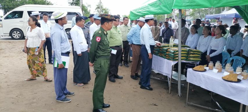 ယင်းနောက် တိုင်းဒေသကြီး ဝန်ကြီးချုပ်နှင့်အဖွဲ့က ပြသထားသည့် စပါးမျိုးစေ့ နမူနာများ၊ Drum Seederများ၊ ဓာတ်မြေဩဇာများ၊ မိုးစပါးစံကွက်အား ရိတ်သိမ်းခြွေလှေ့စက်ဖြင့် ရိတ်သိမ်းနေမှုသစ်စိမ်းမြေဩဇာပိုက်ဆံလျှော်ကြဲပက် စိုက်ပျိုးနေမှုနှင့်စိုက်ပျိုးရေးသုံး ပြခန်း များကို လှည့်လည်ကြည့်ရှုအားပေးသည်။