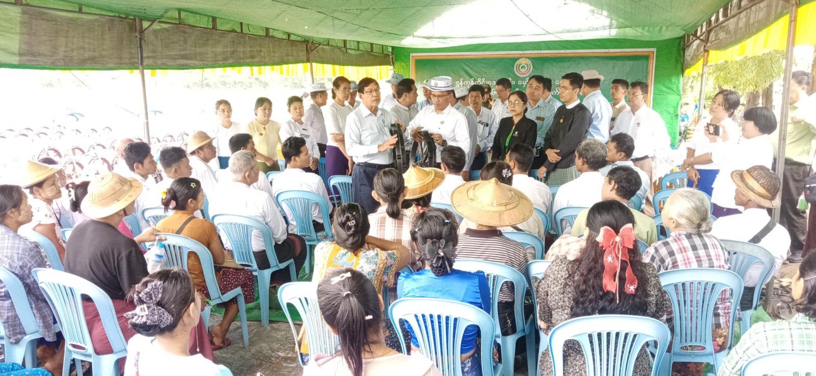 ဆက်လက်၍ တိုင်းဒေသကြီးဝန်ကြီးချုပ်နှင့် တိုင်းဒေသကြီးဝန်ကြီးများက တောင်သူများအား Drum Seeder များနှင့် နေကြာမျိုးစေ့များကို ပေးအပ်ခဲ့ကြသည်။