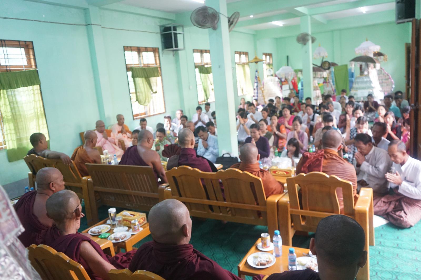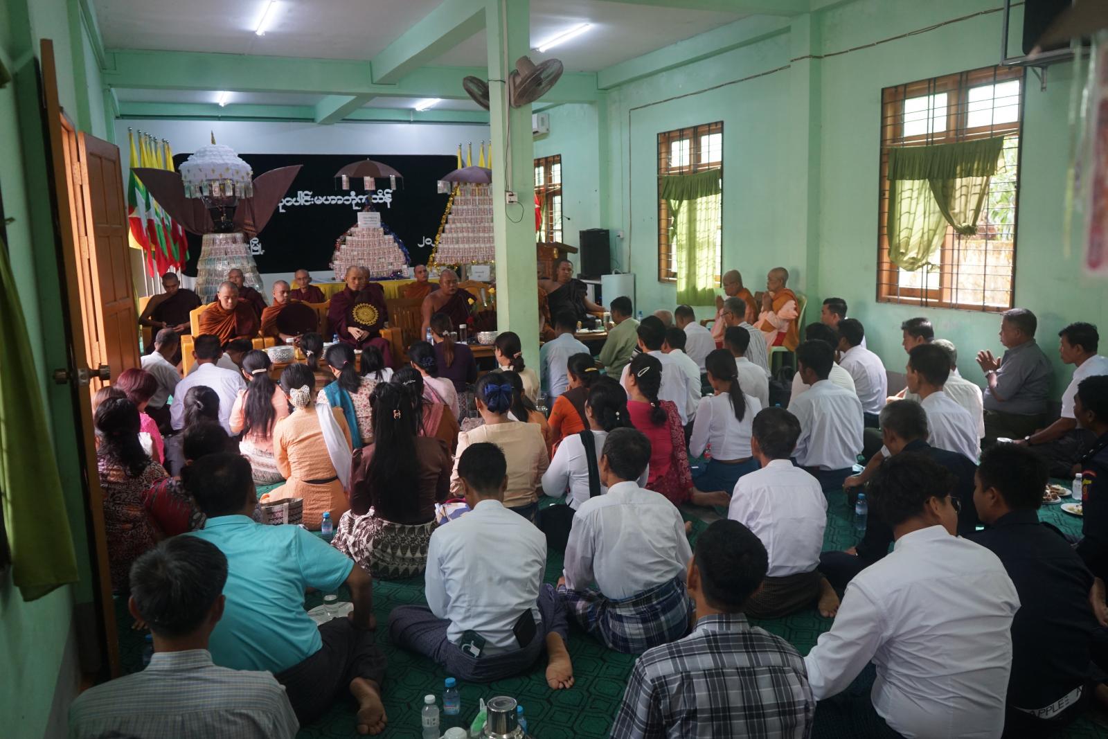 ထို့နောက် မြို့နယ်ဌာနဆိုင်ရာများနှင့် အလှူရှင်များမှ စုပေါင်းလှူဒါန်းသော ငွေပဒေသာပင်များ၏ တန်ဖိုးမှ ငွေသားတန်ဖိုး (၆၆၉၁၀၀၀)ကျပ် နှင့်ပစ္စည်းတန်ဖိုး (၂၁၇၃၀၀၀) စုစုပေါင်း (၈၈၆၄၀၀၀)တို့အား အားဘုန်းတော်ကြီးကျောင်း(၁၃)ကျောင်းနှင့် သီလရှင်ကျောင်း(၁) စုစုပေါင်း (၁၄) ကျောင်းအား မဲဖောက်ဆက်ကပ်လှူဒါန်းခဲ့ပြီး အခမ်းအနားကို ဗုဒ္ဓသာသနံစိရံတိဌတု သုံးကြိမ်ရွတ်ဆို၍ ရတနာရွှေမိုး ငွေမိုးရွာသွန်းကာ အောင်မြင်စွာကျင်းပခဲ့ကြောင်း သိရသည်။