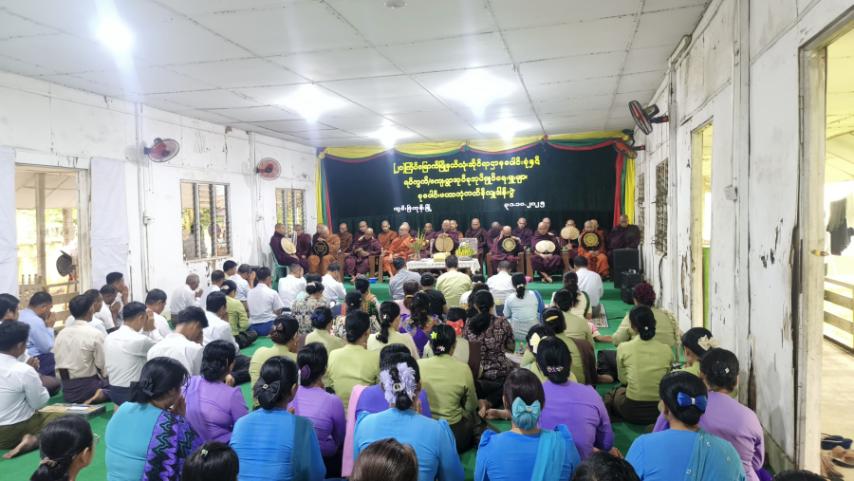 ဦးစွာအခမ်းအနားကို ကြွရောက်လာကြသည့် ဆရာတော်သံဃာတော်များနှင့် ဧည့်ပရိသတ် အပေါင်းတို့က နမောတဿ သုံးကြိမ်ရွတ်ဆို၍ အခမ်းအနား ဖွင့်လှစ်ခဲ့ပြီး၊ မြို့နယ်သံဃနာယက ဥက္ကဋ္ဌဥူးပဏ္ဍိတထံမှ ငါးပါးသီလခံယူဆောက်တည်၍ ကထိန်အနုမောဒနာ တရားတော်ကို နာယူကြပြီး ဆရာတော်အရှင်သူမြတ်တို့ ရွတ်ပွားသရဇ္စျယ်အပ်သော ပရိတ်တရားတော်အား နာယူကြည်ညိုခဲ့ကြသည်။ ဆက်လက်၍ ဆရာတော်အရှင်သူမြတ်တို့အား ကထိန်လျာသင်္ကန်းနှင့် လှူဖွယ်ပစ္စည်းများ ဆက်ကပ်လှူဒါန်းကာ လှူဒါန်းမှုအစုစုတို့အတွက် ရေစက် သွန်းချအမျှပေးဝေခဲ့ကြသည်။