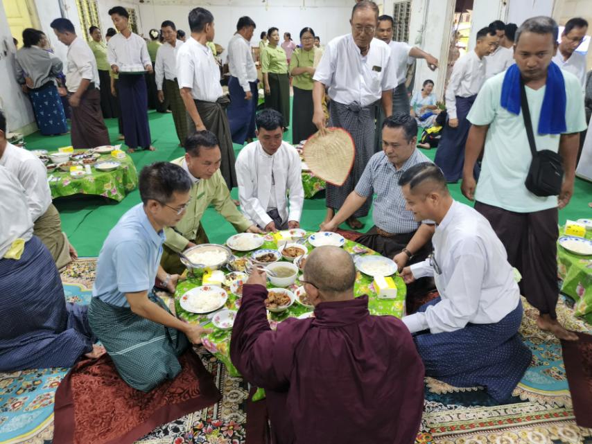 ထို့နောက် ဆရာတော်၊ သံဃာတော်ကြီးများအား မြို့နယ်စီမံခန့်ခွဲရေးနှင့်အုပ်ချုပ်ရေးကော်မတီဥက္ကဋ္ဌနှင့် အဖွဲ့ဝင်များ၊ မြို့နယ်အဆင့်ဌာနဆိုင်ရာအရာရှိများက သံဃာတော်များအား နေ့ဆွမ်းဆက်ကပ်လှူဒါန်းခဲ့ကြပြီး မြို့နယ်ဌာနဆိုင်ရာများနှင့် အလှူရှင်များ ပါဝင်လှူဒါန်းထားသော ပဒေသာပင် ပစ္စည်းတန်းဖိုး (၆၀၉၁၁၀ဝ)ကျပ်၊ ငွေသားလှူဒါန်းငွေကျပ်တန်ဖိုး (၁၂၅၈၁၀၀၀)နှင့်၊ ကထိန်သင်္ကန်း၊ အရံသင်္ကန်း၊ဝတ္တူငွေတန်းဖိုး (၈၂၆၅၀၀)စုစုပေါင်း လှူဒါန်းငွေကျပ် (၂၆၉၃၇၁၀၀)တို့အား ပဒေသာပင်မဲပေါက်သည့် ဘုန်းတော်ကြီးကျောင်းများသို့ သွားရောက်ပို့ဆောင် လှူဒါန်းခဲ့ကြကြောင်း သိရသည်။