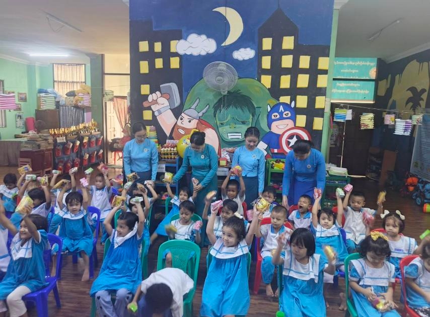 ထိုသို့ဆောင်ရွက်ရာတွင် မြို့နယ်မိခင်နှင့်ကလေးစောင့်ရှောက်ရေးအသင်းဥက္ကဋ္ဌ ဒေါ်ပြည့်ပြည့်ဝန်းနှင့်အသင်းဝင်များ၊ မြို့နယ်အမျိုးသမီးရေးအဖွဲ့ဝင်များက မူကြိုရင်သွေးငယ်များအား အာဟာရဖြစ်စေမည့် မုန့်နှင့်နို့ဘူးများအားကျွေးမွေးပြီးနောက် ပြည်သူ့ကျန်းမာရေးဦးစီးဌာနမှ ကျန်းမာရေးဦးစီးမှူး ဒေါက်တာမေသီတာနှင့်အဖွဲ့က မူကြိုရင်သွေးငယ်များအား သွားနှင့် ခံတွင်းကျန်းမာရေးကိုစစ်ဆေးရာ မြို့နယ်မိခင်နှင့် ကလေးစောင့်ရှောက်ရေးအသင်းဥက္ကဋ္ဌ ဒေါ်ပြည့်ပြည့်ဝန်းနှင့်အဖွဲ့ဝင်များက ကူညီပေးခဲ့ကြကြောင်း သိရသည်။