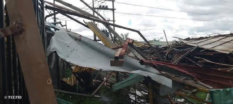 သန်လျင်ခရိုင်၊ သန်လျင်မြို့နယ်၌ နိုဝင်ဘာ ၁ ရက်နေ့ နံနက် (၉) နာရီ (၄၅)အချိန်က ညောင်သုံးပင်ကျေးရွာ၊ သနပ္ပင်သွားလမ်း၊ ကွင်းအမှတ်(၆၈၃/က)ကွင်းတွင် မိုးရွာသွန်းပြီး လေဆင်နှာမောင်း တိုက်ခတ်မှုကြောင့် မဟာနန်းတော် ဆိတ်ခြံ၊ အေဝမ်းနွားခြံနှင့် ဦးမောင်သိန်းဆိတ်ခြံ အဆောက်အဦ ခေါင်မိုးများ ပျက်စီးခဲ့ကြောင်း သိရသည်။