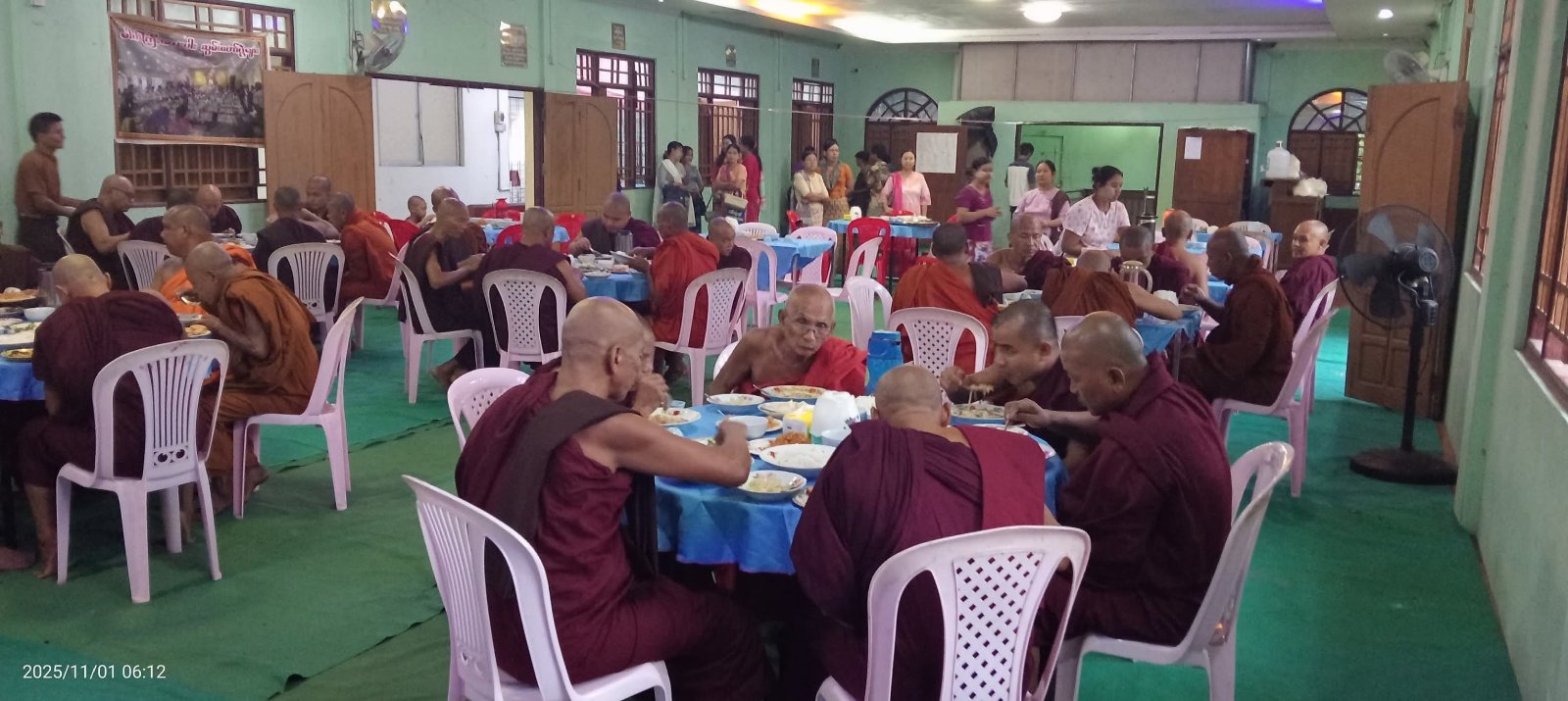 ယင်းနောက် ဆရာတော်ကြီးများအား နေ့ဆွမ်းဆက်ကပ်၍ ဧည့်သည်တော်များအား ထမင်းသုပ်ဖြင့် ကျွေးမွေးလှူဒါန်းခဲ့ကြောင်း သိရသည်။