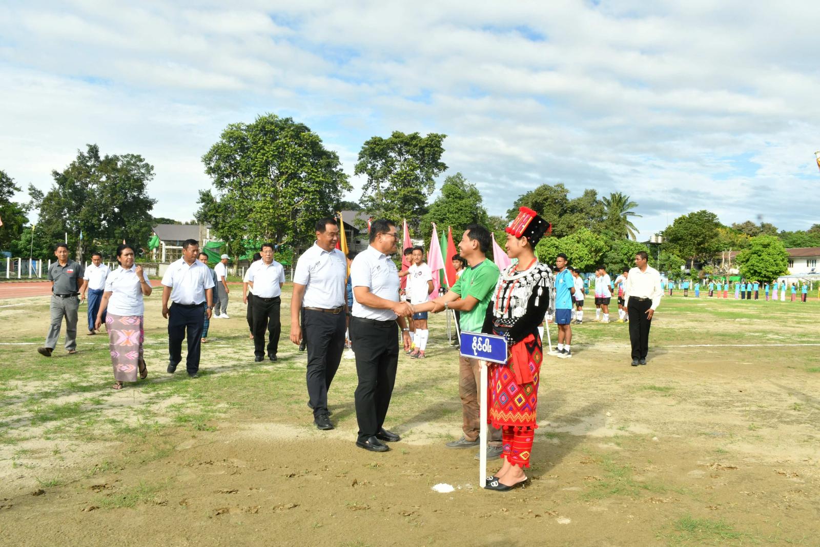 ရှေးဦးစွာ ဌာနေတိုင်းရင်းသားမျိုးနွယ်စု ဘောလုံးအသင်းများ၊ ဘင်ခရာအဖွဲ့နှင့် နယ်စပ်ဒေသ တိုင်းရင်းသားလူငယ်များဖွံ့ဖြိုးတိုးတက်ရေးသင်တန်းကျောင်းမှ ကျောင်းသူလေးများက ကွင်းအတွင်းသို့ ဝင်ရောက်နေရာယူကြပြီး ပြည်နယ်ဝန်ကြီးချုပ်က ယနေ့ကျင်းပသည့် ဘောလုံးပြိုင်ပွဲသည် တတိယအကြိမ်မြောက် ကျင်းပခြင်းဖြစ်ပြီး ဒေသတွင်းရှိ တိုင်းရင်းသား မျိုးနွယ်စုများအတွင်း မိမိတို့မျိုးနွယ်စုကို ချစ်မြတ်နိုးပြီး အခြားသောမျိုးနွယ်စုများကာ ပြည်နယ် ချစ်စိတ်၊ မျိုးချစ်စိတ်များ ပိုမိုတိုးပွားထက်သန်လာစေရန်၊ မိမိတို့ အစိုးရအဖွဲ့နှင့် မျိုးနွယ်စုများအကြား အပြန်အလှန်ယုံကြည်မှု၊ လေးစားမှု၊ စည်းလုံးညီညွတ်မှုနှင့်အတူ ပိုမိုကောင်းမွန်သော လူမှုအသိုက်အဝန်းကို ထူထောင်ပြီး ပြည်နယ်၏ အကျိုးစီးပွားအတွက် လက်တွဲညီညီ အကောင်အထည်ဖော် ဆောင်ရွက်ကြမည်ဆိုသည့် စိတ်ဓာတ်ကို ဖော်ပြရာရောက်ပါကြောင်း၊ ထို့အပြင် ဘောလုံးပြိုင်ပွဲကို အားကစားတစ်ခုအနေဖြင့် ရှုမြင်ခြင်းမပြုဘဲ အားကစားမှတစ်ဆင့် မိမိတို့၏ မျိုးချစ်စိတ်ဓာတ်နှင့်အတူ ရိုးရာယဉ်ကျေးမှုအနုပညာများကို ထုတ်ဖော်ပြသနိုင်သည့် ပြည်နယ်၏ အရေးကြီးသည့် အခန်းကဏ္ဍတစ်ခုအဖြစ် မြင်တွေ့ရမည်ဖြစ်ပါကြောင်း တိုက်တွန်းမှာကြားသည်။