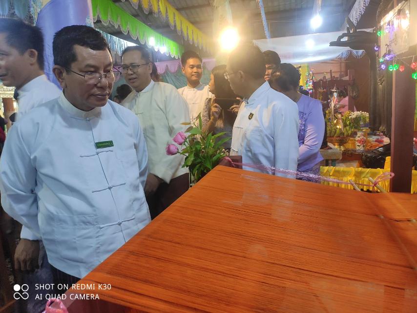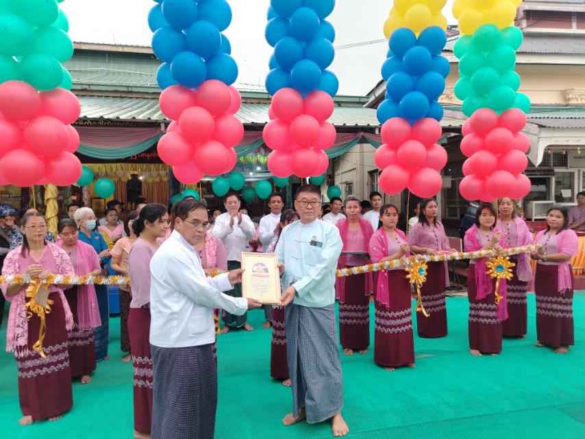 ထို့နောက် ခရိုင်စီမံခန့်ခွဲရေးနှင့် အုပ်ချုပ်ရေးကော်မတီခေတ္တဥက္ကဋ္ဌ ဒုတိယဗိုလ်မှူးကြီး တင်ကိုကို၊ ခရိုင်စီမံခန့်ခွဲရေးနှင့်အုပ်ချုပ်ရေးကော်မတီဝင်များ၊ မြို့နယ်စီမံခန့်ခွဲရေးနှင့် အုပ်ချုပ်ရေးကော်မတီဥက္ကဋ္ဌ ဦးစိုးတင့်၊ ခရိုင်သာသနာရေးမှူး၊ သန်လျင်ပြည်သူ့ဆေးရုံဆရာ ဝန်ကြီးများ၊ ကျိုက်ခေါက်ဂေါပကမှ တာဝန်ရှိသူများက ရက်ကမ်းအလှူရှင်များအား မှတ်တမ်းတင်ဂုဏ်ပြုကတ်များ ပေးအပ်ခဲ့ပြီးအခမ်းအနားအား ဖဲကြိုးဖြတ်ဖွင့်လှစ်ကာ စုပေါင်းအမှတ်တရ ဓါတ်ပုံရိုက်ကူးခဲ့ကြပြီးနောက် ယက္ကန်းစင်ပြိုင်ပွဲဝင်များမှ ပြိုင်ပွဲဝင်နေမှုကို လိုက်လံကြည့်ရှု အားပေးခဲ့ကြသည်။