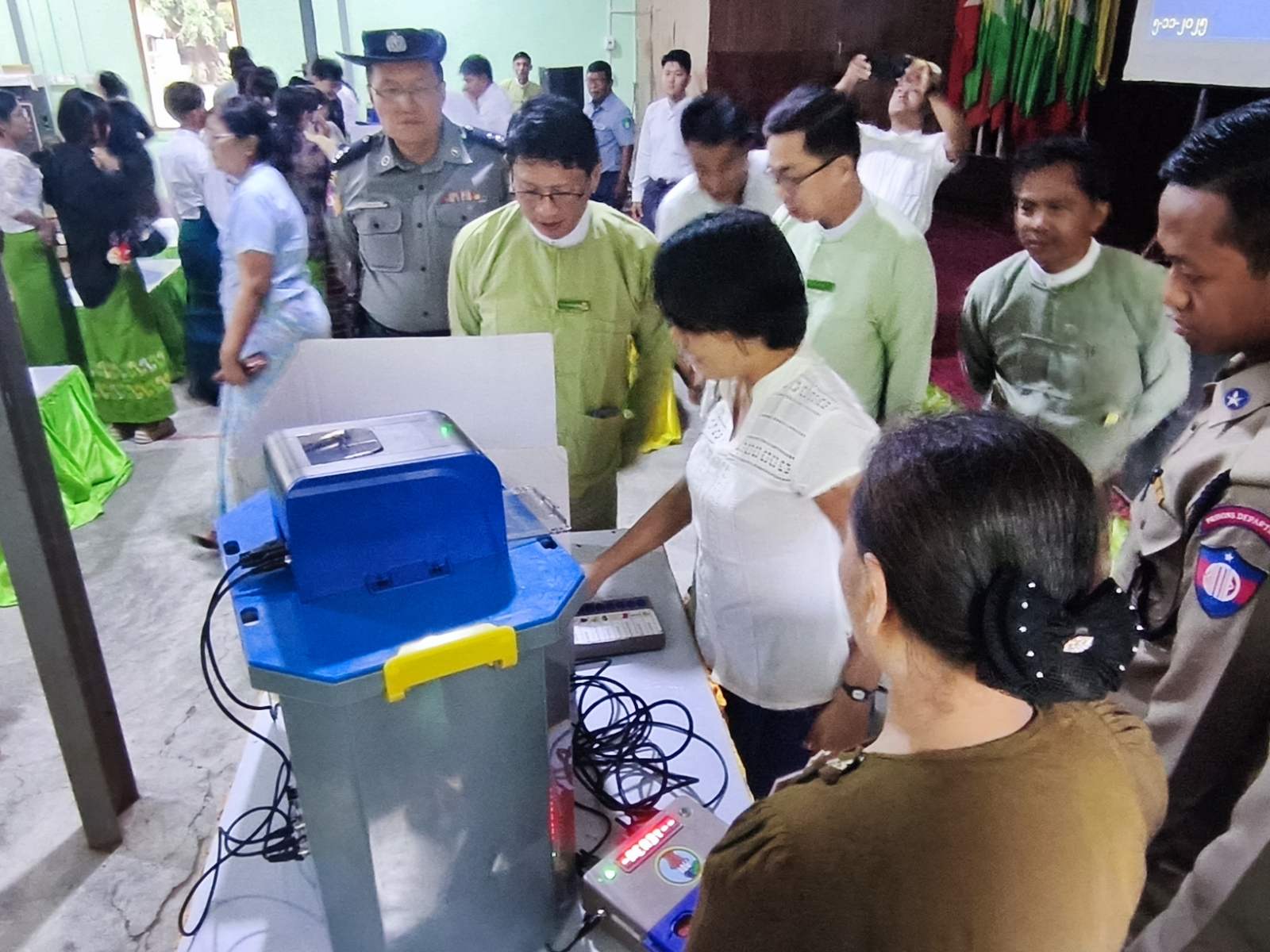 ရမည်းသင်းမြို့နယ်၌ အထွေထွေရွေးကောက်ပွဲတွင် မြန်မာအီလက်ထရောနစ်မဲပေးစက် (MEVM) ကို ကျွမ်းကျင်စွာ ကိုင်တွယ်အသုံးပြုနိုင်ရေး လက်တွေ့စမ်းသပ် လေ့ကျင့်ခြင်းကို ယမန်နေ့နံနက်ပိုင်းက သင်းရတနာခန်းမ၌ ကျင်းပပြုလုပ်ခဲ့သည်။