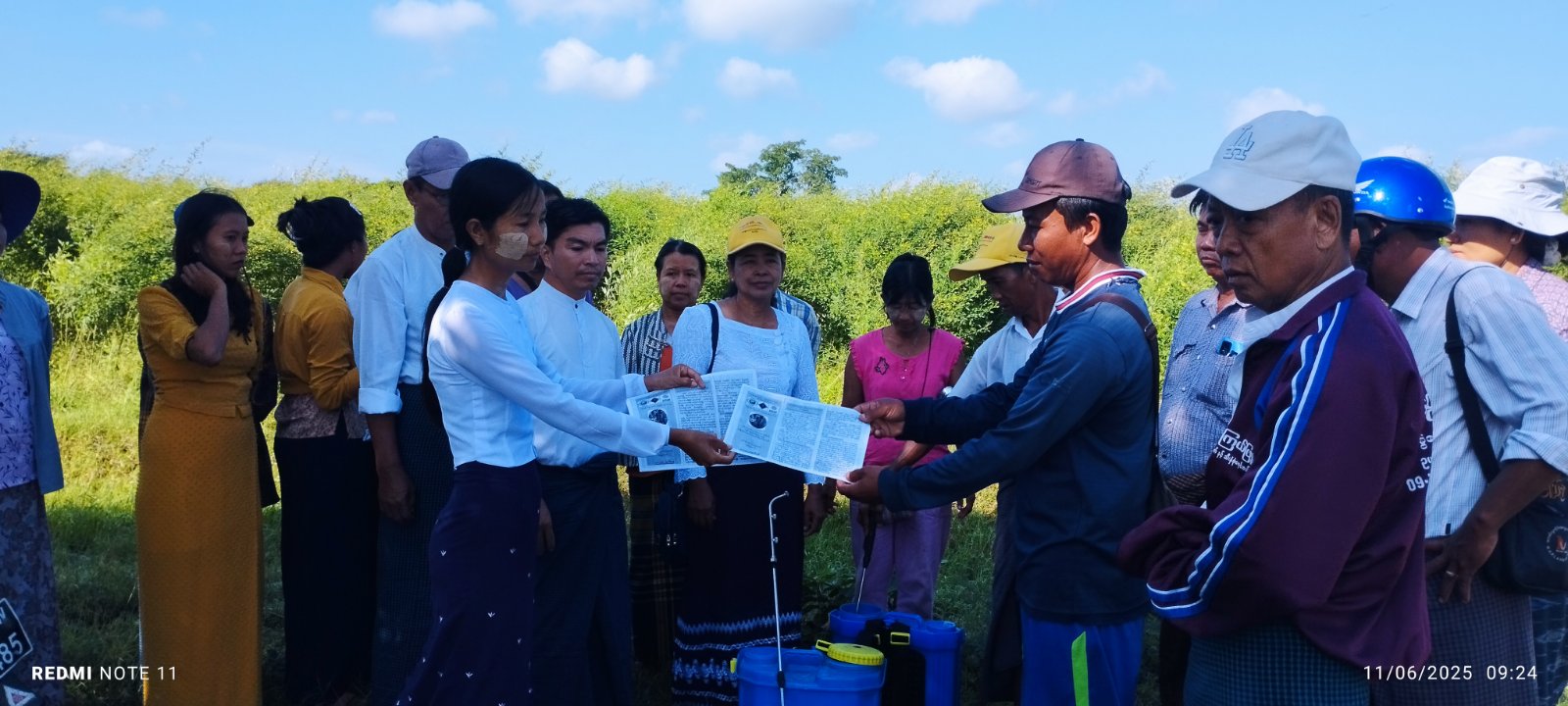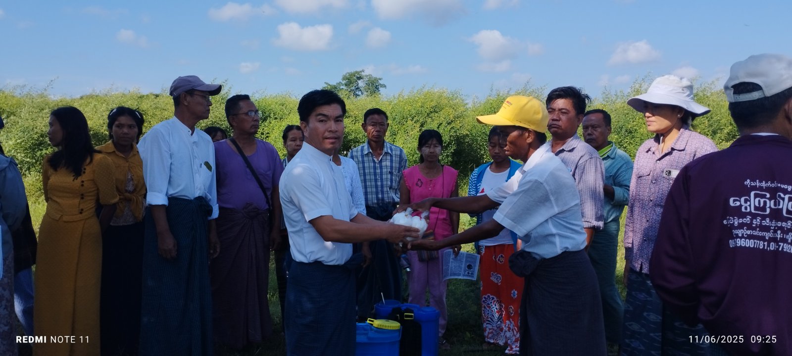 အဆိုပါအခမ်းအနားသို့ တက်ရောက်လာကြသော တောင်သူ(၃၂)ဦးတို့အား စိုက်ပျိုးရေးဦးစီးဌာနမှ ဝန်ထမ်း(၁၁)တို့က(ယူရီးယား+လက်ချား) ရွက်ဖျန်းမြေဩဇာအထုပ်များနှင့် အသုံးပြုပုံလက်ကမ်းစာစောင်များ ဖြန့်ဝေပေးခဲ့ပြီး ဒု-ဦးစီးမှူး၊ ဦးအာကာစိုးမှ နည်းပညာပေးရှင်းလင်းဆွေးနွေးခဲ့ကြောင်း သိရသည်။