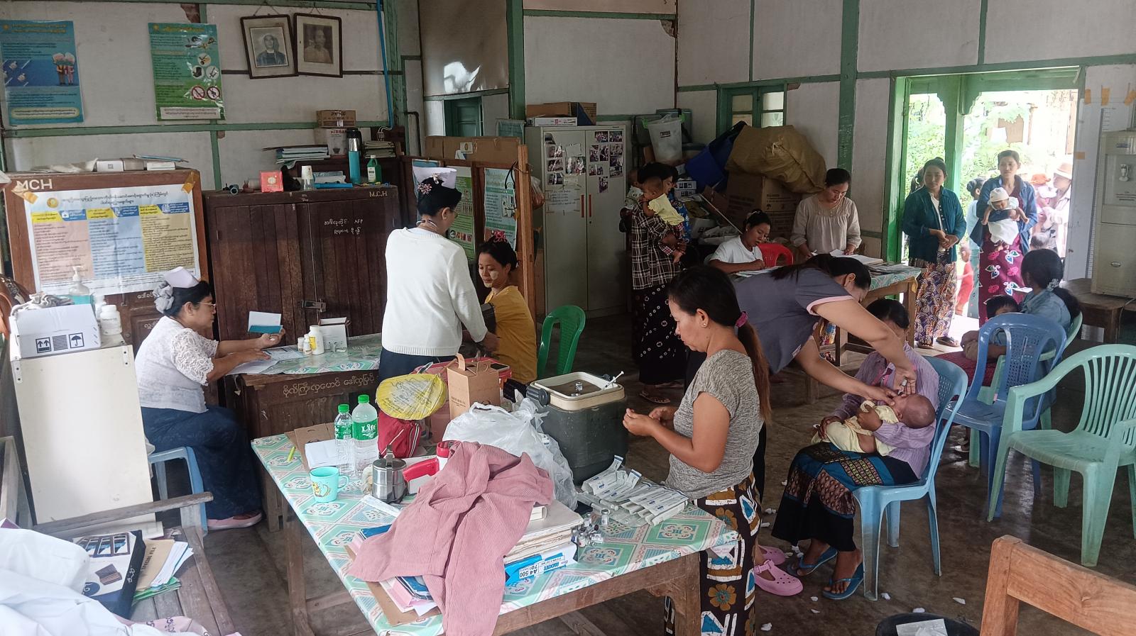 မြို့နယ်မိခင်နှင့်ကလေးကျန်းမာရေးဌာနမှ ကျန်းမာရေးဆရာမများနှင့် သားဖွားဆရာမတို့က ကိုယ်ဝန်ဆောင်မိခင်များနှင့် မွေးကင်းစမှ (၁) နှစ်ခွဲအောက် ကလေးငယ်များအား လစဉ်သတ်မှတ်ရက်များတွင် ကာကွယ်ဆေးများကို ဆက်လက်ထိုးနှံတိုက်ကျွေးပေးသွားမည်ဖြစ်ကြောင်း မြို့နယ်မိခင်နှင့်ကလေးကျန်းမာရေးဌာန တာဝန်ရှိသူတစ်ဦးထံမှ သိရသည်။