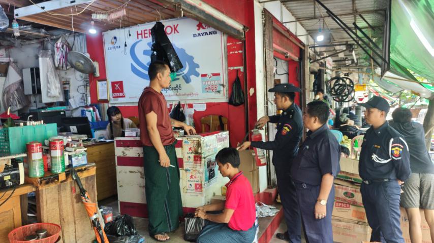 ရန်ကုန်တိုင်းဒေသကြီး၊ အင်းစိန်မြို့နယ်၌ မီးလောင်မှု၊ မီးလန့်မှု မဖြစ်ပွားစေရေး မီးဘေးကြိုတင်ကာကွယ်ရေးလုပ်ငန်းများကို အရှိန်အဟုန်မြှင့် ဆောင်ရွက်လျက်ရှိရာ မီးဘေးလုံခြုံရေး စစ်ဆေးခြင်းကို ယမန်နေ့နံနက် ၁၀ နာရီက နံ့သာကုန်းစက်ဘီးဝန်းသို့ ကွင်းဆင်းစစ်ဆေးခဲ့ကြသည်။