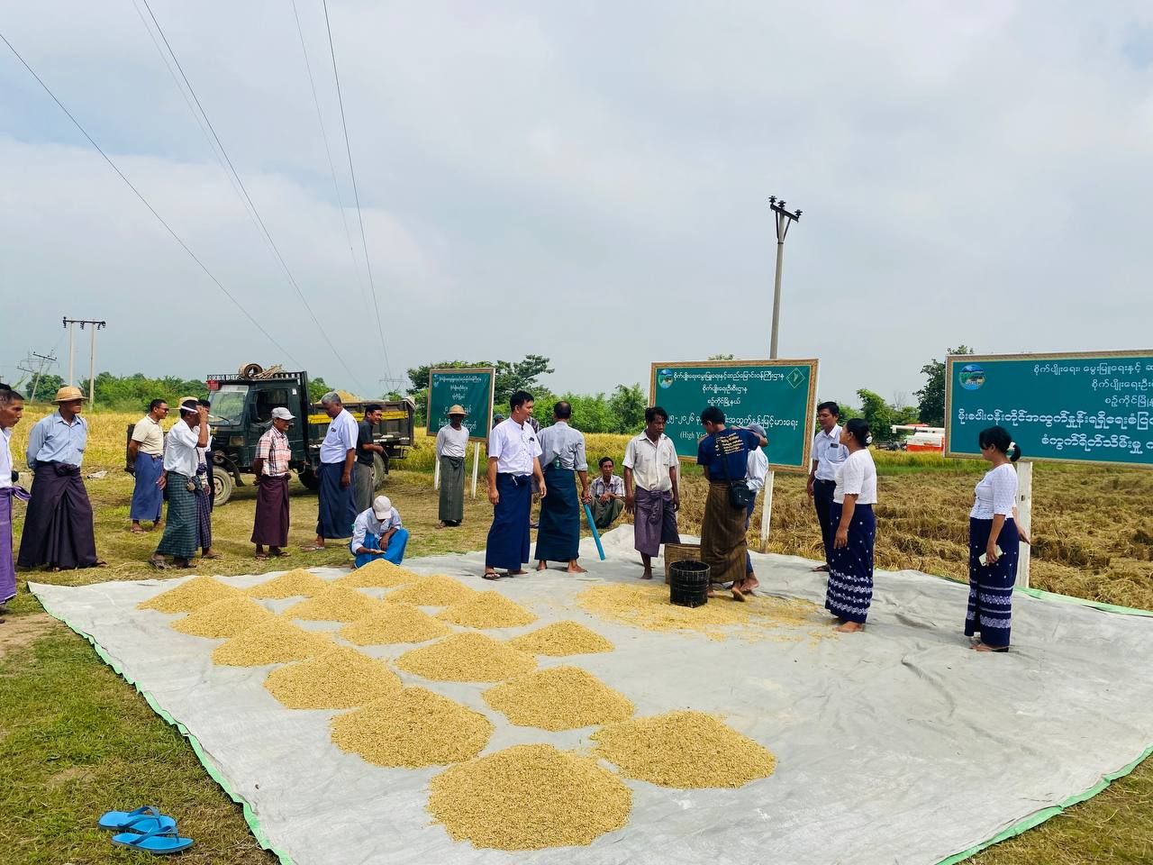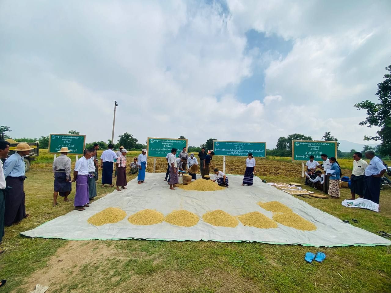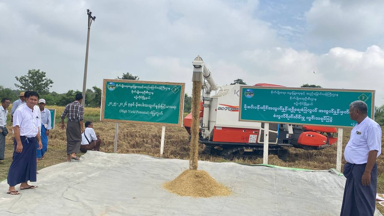 မန္တလေးတိုင်းဒေသကြီး၊ ကျောက်ဆည်ခရိုင်၊ စဉ့်ကိုင်မြို့နယ် စိုက်ပျိုးရေးဦးစီးဌာနမှ ၂၀၂၅-၂၀၂၆ ခုနှစ် မိုးစပါးပန်းတိုင်အထွက်နှုန်း ရရှိရေး စံကွက်ရိတ်သိမ်းပွဲ ကွင်းသရုပ်ပြပွဲကို အုန်းပင်ခြံကျေးရွာ တောင်သူ ဦးရဲလွင်၏ ကွင်းအမှတ် (၇၀)၊ ဦးပိုင်အမှတ် (၆၉)၊ ဆင်းသုခ (၅.၀၀)ဧက စံပြကွက်၌ ယမန်နေ့နံနက် ၉ နာရီခွဲအချိန်က ကျင်းပပြုလုပ်ခဲ့သည်။