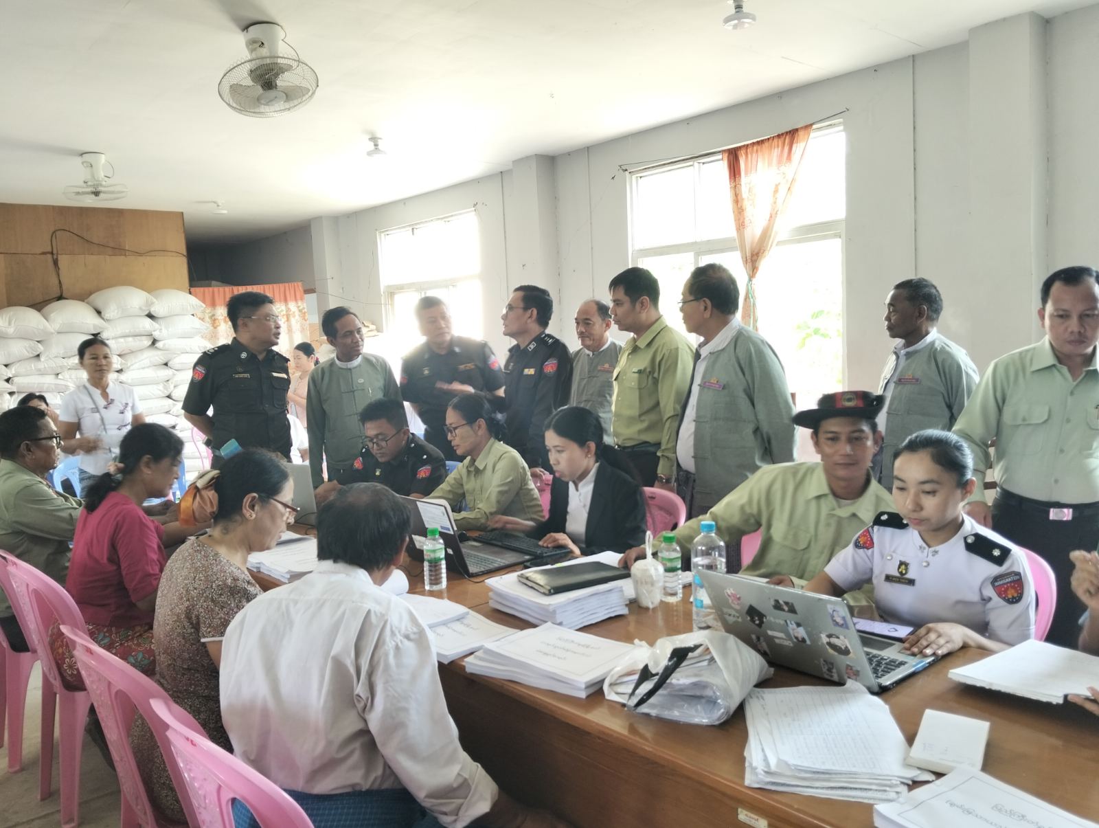 မန္တလေးတိုင်းဒေသကြီး၊ ပြည်ကြီးတံခွန်မြို့နယ်တွင် ဒုတိယအကြိမ် ကပ်ထားကြေညာမည့် မဲစာရင်း ပြည့်စုံမှန်ကန်စေရေး ယမန်နေ့ နံနက် ၁၀ အချိန်က မြို့နယ်အထွေထွေအုပ်ချုပ်ရေးဦးစီးဌာန အစည်းအဝေးခန်းမ၌ ပြုလုပ်ရာ အဆိုပါတိုက်ဆိုင်စစ်ဆေးသည့်နေရာသို့ တာဝန်ရှိသူများက လာရောက်ကြည့်ရှု စစ်ဆေးခဲ့သည်။