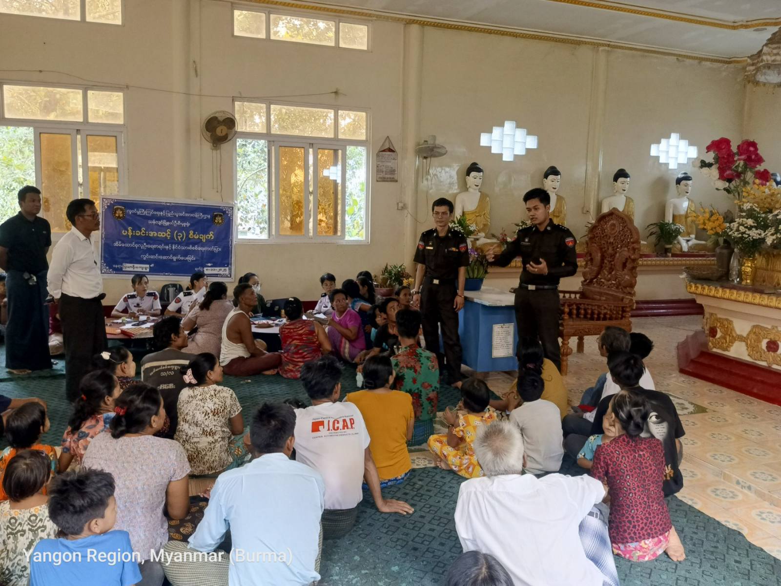 ထိုသို့ဆောင်ရွက်ပေးရာတွင် ယမန်နေ့ညနေပိုင်းက သန်လျင်မြို့နယ် လက်ယက်စမ်းကျေးရွာအုပ်စု မြယာရိုးကျေးရွာရှိ ပြည်သူများအား ဘုန်းတော်ကြီးကျောင်းဓမ္မာရုံ၌ စုရပ်ထားရှိကာ မြို့နယ်လဝကဦးစီးဌာနမှူး ဦးဇွဲမင်းဦးနှင့်ဝန်ထမ်းများက အိမ်ထောင်စုစာရင်းမရှိသူများအား (M)သင်္ကေတဖြင့် ဆောင်ရွက်ပေးခဲ့သည်။