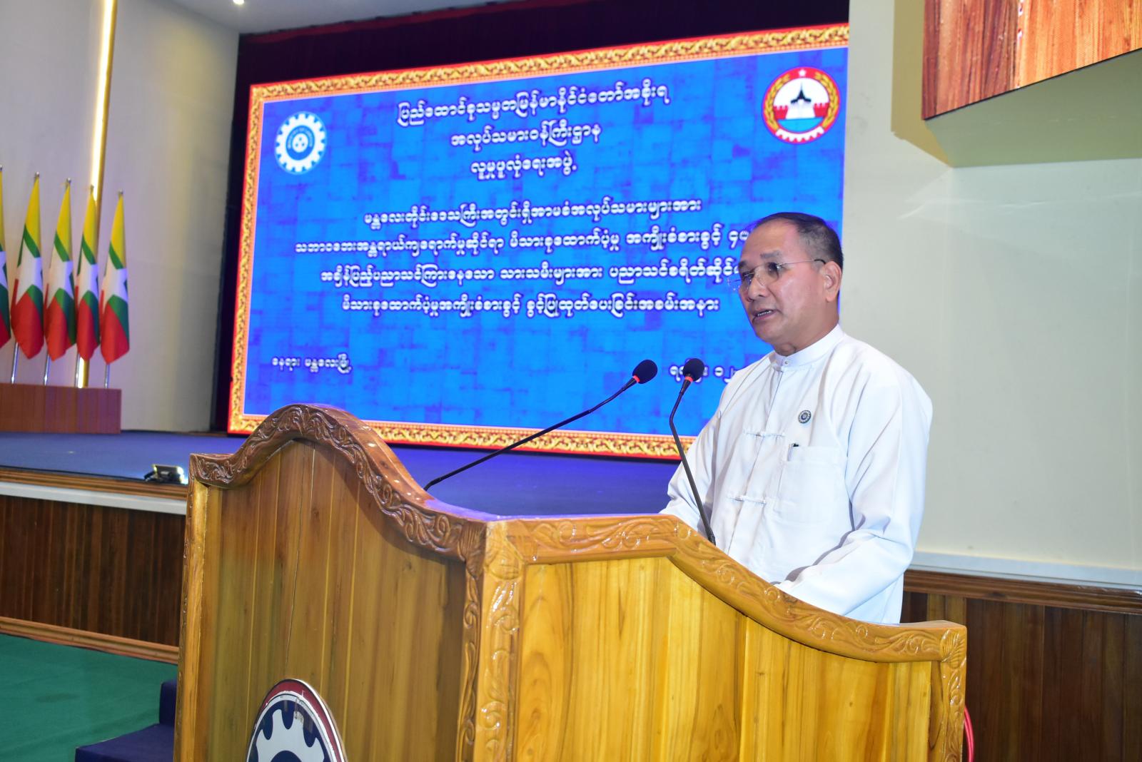 မန္တလေးတိုင်းဒေသကြီးအတွင်းရှိ အာမခံအလုပ်သမားများအား သဘာဝဘေးအန္တရာယ်ကျရောက်မှုဆိုင်ရာ မိသားစုထောက်ပံ့မှု အကျိုးခံစားခွင့် ၄၀%နှင့် သားသမီးများအား ပညာသင်စရိတ်ဆိုင်ရာ မိသားစုထောက်ပံ့မှု အကျိုးခံစားခွင့် ခွင့်ပြုထုတ်ပေးခြင်းအခမ်းအနားကို ယနေ့နံနက်ပိုင်းက မန္တလေးမြို့ မြို့တော်ခန်းမ၌ ကျင်းပခဲ့သည်။