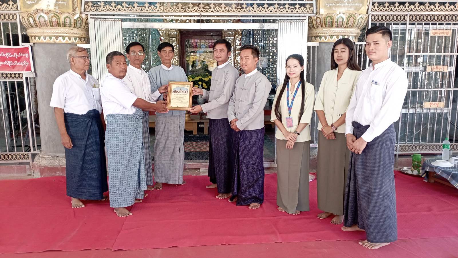 အဆိုပါ ကမ္ဘောဇဘဏ်လီမိတက် (မြစ်သားဘဏ်ခွဲ) မှ သတ္တမကြိမ် နဝကမ္မဝတ္ထုငွေများ လှူဒါန်းရာတွင် သမိုင်းဝင်ရွှေမုဋ္ဌောစေတီတော်မြတ်ကြီးအား ဘက်စုံမွန်းမံပြုပြင်နိုင်ရေးအတွက် အလှူငွေကျပ် သိန်း (၁၀၀) ပေးအပ်လှူဒါန်းခဲ့ရာရွှေမုဋ္ဌောစေတီတော်မြတ်ကြီး၏ ဘုရားအကျိုးတော်ဆောင်ဂေါပကဥက္ကဋ္ဌနှင့် အဖွဲ့ဝင်များက လက်ခံရယူခဲ့ပြီး မြစ်သားကမ္ဘောဇဘဏ်ခွဲသို့ ဂုဏ်ပြုမှတ်တမ်းလွှာ ပြန်လည်ပေးအပ်ခဲ့ကြောင်း သိရှိရသည်။