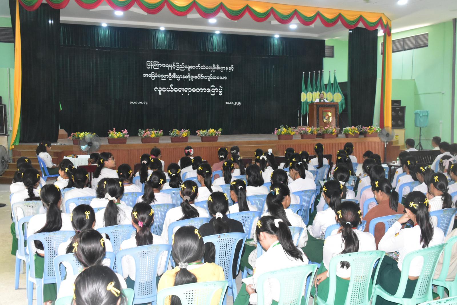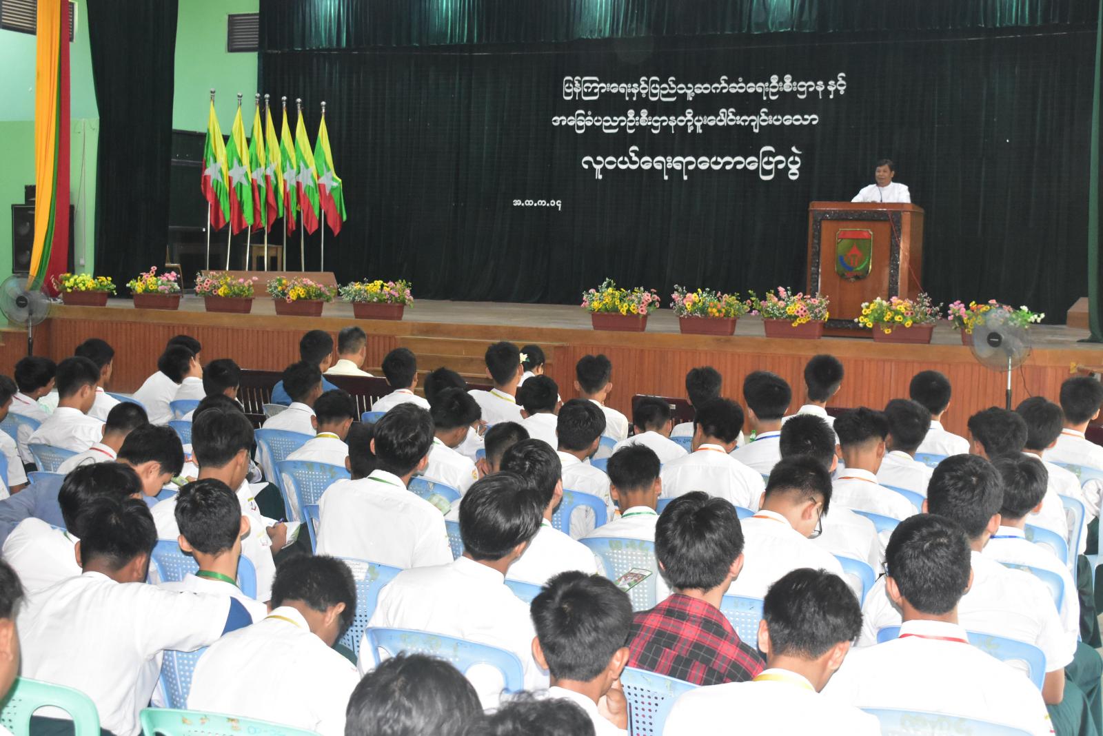 ဆက်လက်ပြီး ပြန်ကြားရေးနှင့်ပြည်သူ့ဆက်ဆံရေးဦးစီးဌာန ဦးစီးအရာရှိ ဦးထွန်းထွန်းနိုင်မှ အခမ်းအနားသို့ တက်ရောက်လာသည့် ကျောင်းသား၊ ကျောင်းသူများအား မှတ်သားလိုက်နာစေရန် “ကလေးအလုပ်သမား ပပျောက်ရေးဆိုင်ရာ သိကောင်းစရာများ၊ မူးယစ်ဆေးဝါးအန္တရာယ် အကြောင်းအရာများနှင့် လူငယ်များသိကောင်းစရာ အကြောင်းအရာများ” စတဲ့ ခေါင်းစဉ်များဖြင့် ဟောပြောခဲ့သည်။ အခမ်းအနားပြီးတွင် ကျောင်းသား၊ကျောင်းသူများ ဗဟုသုတများစွာရရှိစေရန် သုတ၊ရသ စာအုပ်စာစောင်များ ခင်းကျင်းပြသခြင်း၊ နံရံကပ်ဆိုင်းဘုတ်ပြသခြင်းများ ဆောင်ရွက်ပေးခဲ့ကြောင်း သိရှိရသည်။