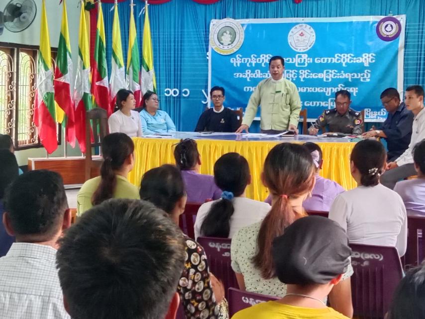 အဆိုပါ အခမ်းအနားသို့ မြို့နယ်စီမံခန့်ခွဲရေးနှင့် အုပ်ချုပ်ရေးကော်မတီဥက္ကဋ္ဌ၊ လူမှုဝန်ထမ်းဦးစီးဌာန တောင်ပိုင်းခရိုင်လူမှုဝန်ထမ်းရုံးမှ ဒုတိယညွှန်ကြား ရေးမှူးနှင့်ဝန်ထမ်းများ၊ မြန်မာနိုင်ငံရဲတပ်ဖွဲ့ မြို့နယ်ရဲတပ်ဖွဲ့မှူး၊ မြို့နယ်ဥပဒေရုံး ဒုမြို့နယ်ဥပဒေအရာရှိ၊ မြို့နယ်စည်ပင်သာယာအုပ်ချုပ်ရေးမှူးနှင့်အဖွဲ့၊ ပြန်ကြားရေးနှင့်ပြည်သူ့ဆက်ဆံရေးဦးစီးဌာနဒုဦးစီးမှူး၊ မြို့နယ်အမျိုးသမီးရေးရာအဖွဲ့ဥက္ကဋ္ဌနှင့် အဖွဲ့ဝင်များ၊ မိခင်နှင့်ကလေးစောင့်ရှောက်ရေးအသင်းအဖွဲ့ဝင်များ၊ စီးပွားရေးလုပ်ငန်းရှင်များ၊ စုစုပေါင်းအင်အား (၆၀)ဦး ခန့် တက်ရောက်ခဲ့ကြပြီး ဟောပြောပွဲအပြီးတွင် ပြန်ကြားရေးနှင့်ပြည်သူ့ဆက်ဆံရေးဦးစီးဌာနမှ ထုတ်ဝေသော ကလေးအလုပ်သမားပပျောက်ရေး အသိပညာပေးလက်ကမ်းစာစောင်များကို တက်ရောက်လာသူများအားအခမဲ့ဖြန့်ဝေပေးခဲ့ပါ သည်။