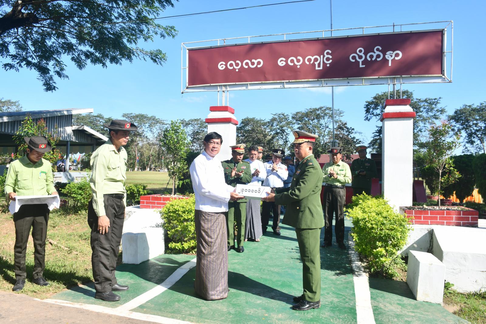 ထို့နောက် စံပြတပ်သားဆု၊ စစ်ရေးပြထူးချွန်ဆု၊ လက်ဖြောင့်တပ်သားဆု၊ စစ်သည်တော်ကျင့်ဝတ် ဆု၊ မိုင်းကျွမ်းကျင်ဆု၊ တပ်စိတ်တိုက်နည်းပထမဆု၊ ချေမှုန်းရေးပထမဆု၊ အကောင်းဆုံးအိပ်ဆောင် ဆုရရှိသူများကို ကျောင်းအုပ်ကြီးက ဆုများပေးအပ်ချီးမြှင့်ပြီး ကျောင်းအုပ်ကြီးက သင်တန်းဆင်း မိန့်ခွန်း ပြောကြားသည်။