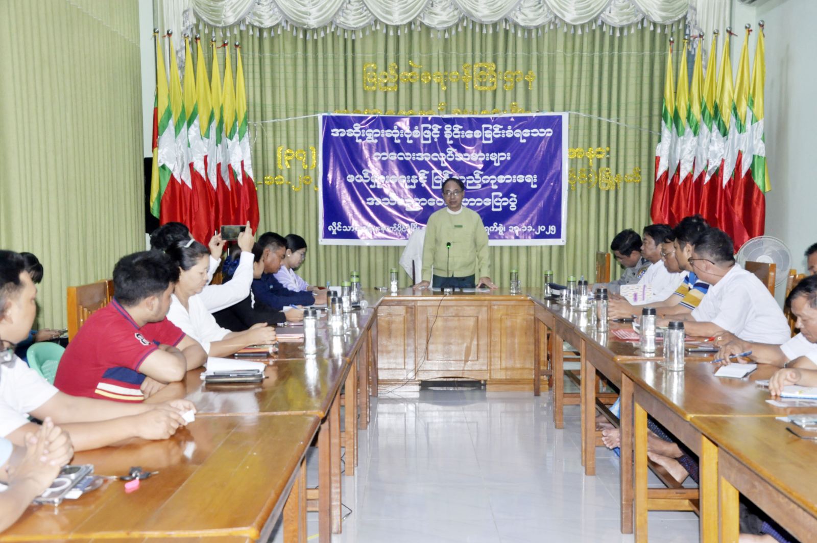 ဦးစွာ မြို့နယ်စီမံခန့်ခွဲရေးနှင့်အုပ်ချုပ်ရေးကော်မတီဥက္ကဋ္ဌ ဦးထွန်းထွန်းလင်းက အဖွင့်အမှာစကား ပြောကြားသည်။