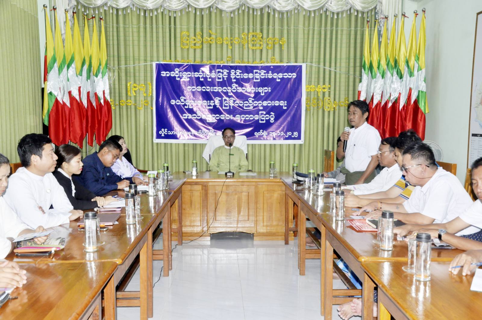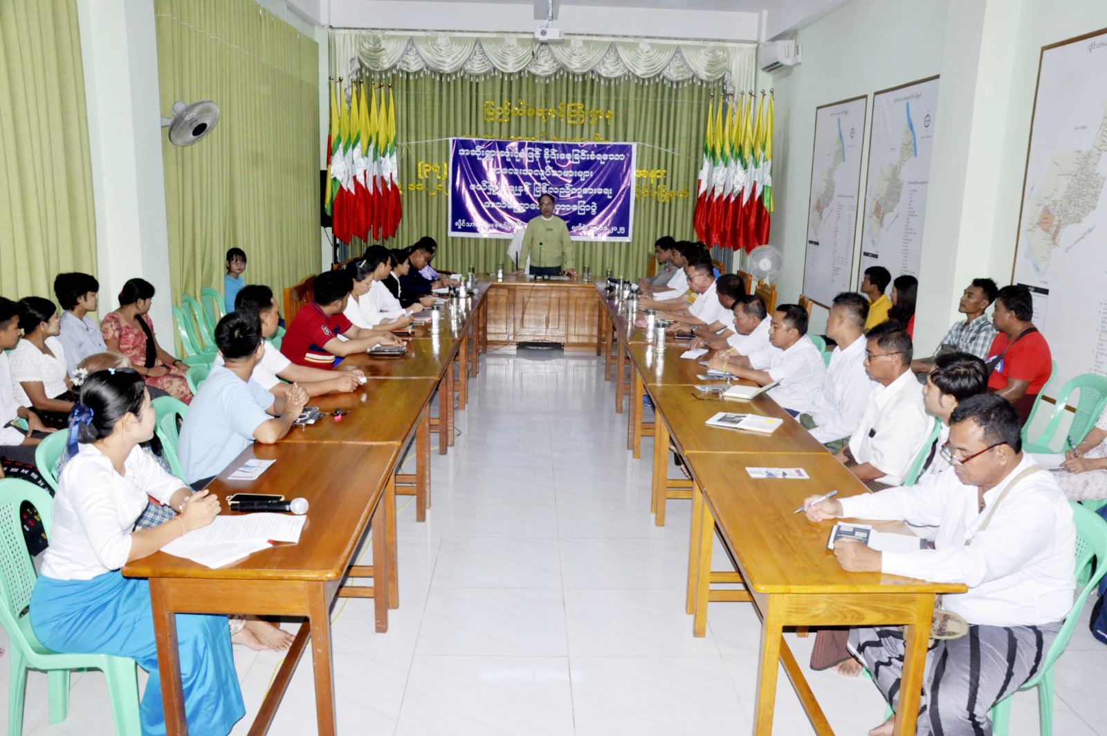 ယင်းနောက် မြို့နယ်ဥပဒေ၊ အလုပ်ရုံနှင့်အလုပ်သမားဥပဒေစစ်ဆေးရေးဌာန၊ မြို့နယ်စည်ပင်သာယာရေး၊ လူကုန်ကူးမှုတားဆီးနှိမ်နှင်းရေး ရဲတပ်ဖွဲ့တို့မှ သက်ဆိုင်ရာအကြောင်းအရာများကို အသီးသီးအသိပညာပေးဆွေးနွေးကြကြောင်း သိရသည်။