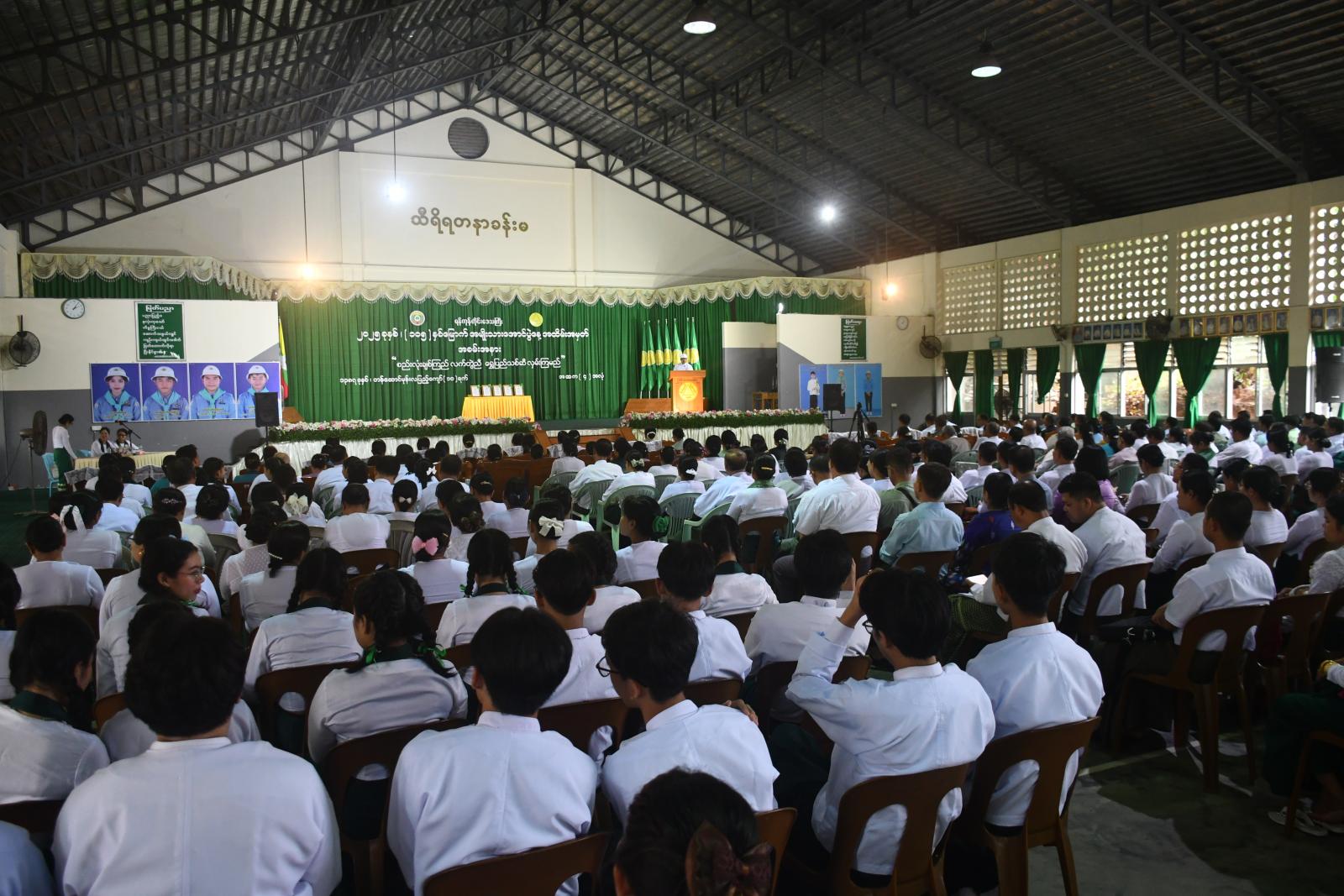 ယင်းနောက် ဗိုလ်တထောင်မြို့နယ်၊ အမှတ်(၅) အခြေခံပညာအထက်တန်းကျောင်းမှ ကျောင်းသား၊ ကျောင်းသူများက မြန်မာ့ကျောင်းသီချင်းဖြင့် သီဆိုဖျော်ဖြေကြပြီး တိုင်းဒေသကြီးဝန်ကြီးချုပ်က ဖျော်ဖြေတင်ဆက်ကြသူများအား ဂုဏ်ပြုချီးမြှင့်ငွေများ ပေးအပ်ခဲ့ကြောင်း သိရသည်။