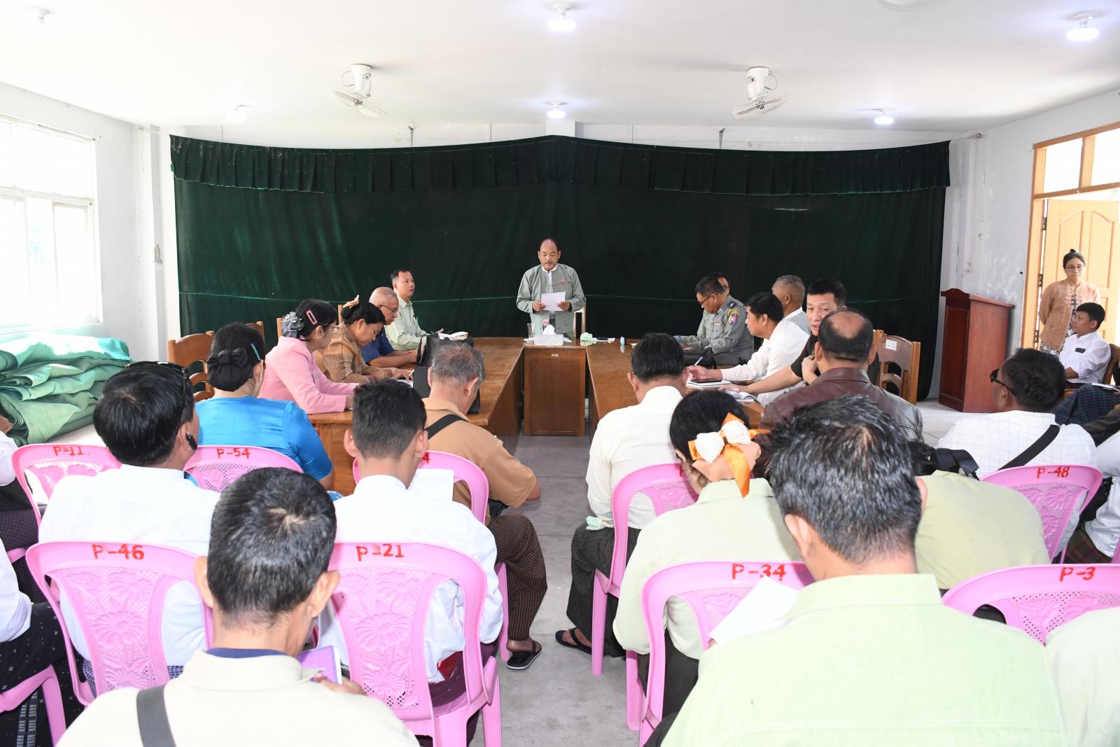 ဆက်လက်ပြီး မြို့နယ်ရွေးကောက်ပွဲကော်မရှင်အဖွဲ့ခွဲ အတွင်းရေးမှူး ဦးမင်းစိုးနိုင်က အသက် (၁၈) နှစ်ပြည့်ပြီးသူတိုင်း မဲပေးခွင့်မဆုံးရှုံးရအောင် မဲပေးနိုင်ရေးအတွက် ဆန္ဒမဲလက်မှတ်ထည့်မည့် မဲပုံများ၊ ကြိုတင်မဲလက်မှတ်ထုတ်ပေးမည့်အခြေအနေများ၊ မဲစာရင်းကိစ္စ ဆောင်ရွက်ရမည့်လုပ်ငန်း၊ ဆောင်ရွက်ပုံအဆင့်ဆင့်တို့ကို အသေးစိတ် ရှင်းလင်းဆွေးနွေးခဲ့ရာ အစည်းအဝေးသို့ တက်ရောက်လာသည့် သက်ဆိုင်ရာတာဝန်ရှိသူများကလည်း အသီးသီးမေးမြန်း ဖြေကြားဆွေးနွေးခဲ့ကြကြောင်း သိရသည်။