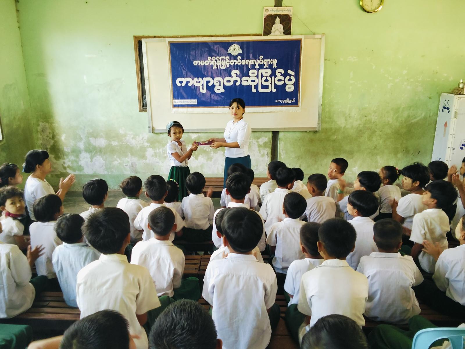 ထို့နောက် မြို့နယ် ပြန်ကြားရေးနှင့်ပြည်သူ့ဆက်ဆံရေးဦးစီးဌာနမှ ပြသထားသော အမျိုးသမီးအကြမ်းဖက်မှု ပပျောက်ရေးအသိပညာပေးနံရံကပ်စာစောင်များ၊ စာဖတ်ရှိန်မြှင့်တင်ရေး အသိပညာပေးနံရံကပ်စာစောင်များ ပြသထားရာ ကျောင်းသား/ကျောင်းသူများ စိတ်ပါဝင်စားစွာ လေ့လာနေကြကြောင်း သိရသည်။