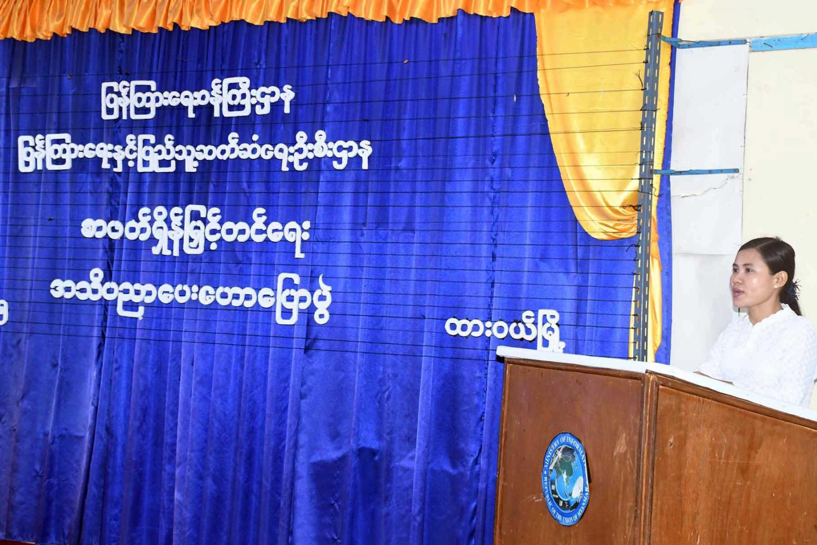 ဟောပြောပွဲတွင် ခရိုင်ပြန်ကြားရေးနှင့်ပြည်သူ့ဆက်ဆံရေးဦးစီးဌာန၊ ဦးစီးအရာရှိ ဒေါ်မိုးမိုးခိုင်က နိုင်ငံတော်အနေဖြင့် စာဖတ်ရှိန်မြှင့်မားရေးအတွက် စာဖတ်ရှိန်မြှင့်တင်ရေးပွဲတော်များကို နေရာအနှံ့တွင် ကျင်းပဆောင်ရွက်လျက်ရှိကြောင်း၊ လူငယ်လူရွယ်များအနေဖြင့် စာဖတ်သည့် အလေ့အကျင့်ကောင်းများ ရရှိလာနိုင်စေရေး၊ စာအုပ်၊ စာပေဖတ်ရှုခြင်းဖြင့် အသိပညာဗဟုသုတများရရှိလာနိုင်စေရေး၊ ရရှိလာသည့် အသိပညာဗဟုသုတများကို မိမိ၏မိသားစုနှင့် ပတ်ဝန်းကျင်တွင် မျှဝေပေးနိုင်ရေး၊ အသိပညာရရှိစေသည့် စာအုပ်၊ စာပေများကို ရွေးချယ်ဖတ်ရှုလာနိုင်စေရေး၊ လူငယ်လူရွယ်များ ဗလငါးတန်နှင့် ပြည့်စုံလာနိုင်စေရေးတို့အတွက် ရည်ရွယ်၍ အသိပညာပေးဟောပြောပွဲ ကျင်းပပြုလုပ်ရခြင်းဖြစ်ကြောင်း ပြောကြားခဲ့သည်။