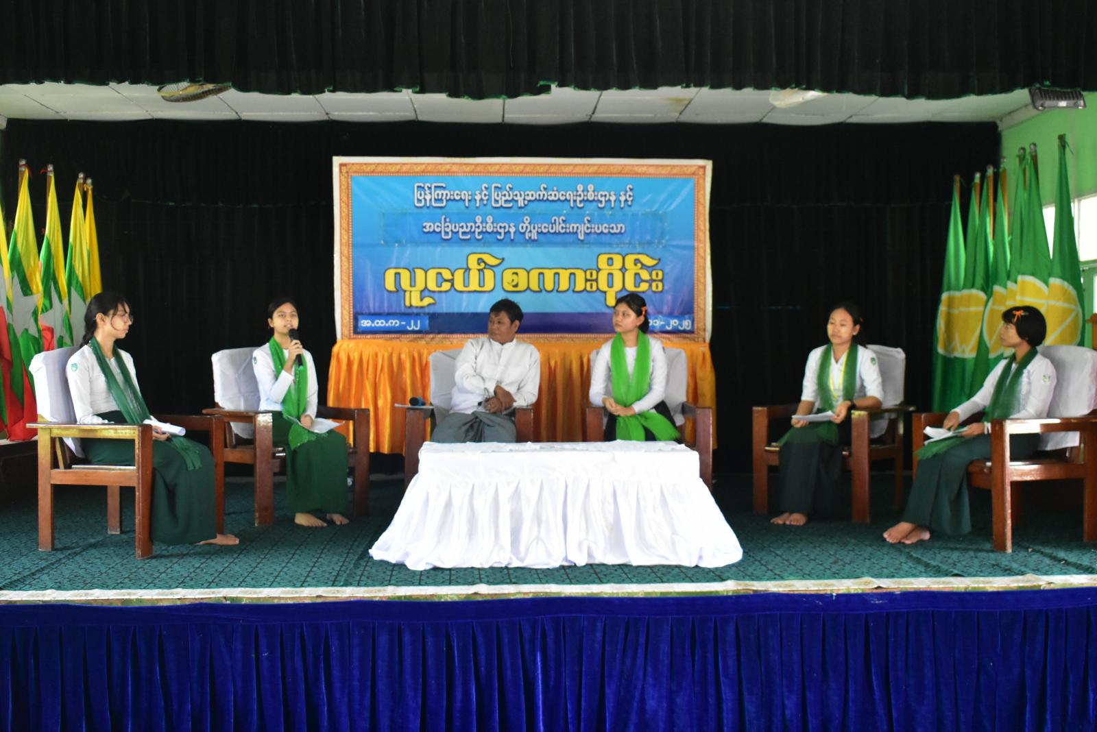 ဆက်လက်ပြီး လူငယ်စကားဝိုင်း ကျင်းပဆောင်ရွက်ခဲ့ရာ ဦးစီးအရာရှိ ဦးထွန်းထွန်းနိုင်နှင့် အမှတ် (၂၂) အခြေခံပညာအထက်တန်းကျောင်းရှိ ကျောင်းသူငါးဦးတို့မှ ပါဝင်ဆွေးနွေးပြောကြားခဲ့သည်။ ထိုသို့ လူငယ်စကားဝိုင်း ဆွေးနွေးပြောကြားရာတွင် မဇွန်ပွင့်လှိုင်က “လူငယ်နှင့်အားကစား” ၊ မမေဇင်သက်က “လူငယ်နှင့် ဗလငါးတန်” ၊ မကြည်ဖြူရှင်းသန့်က “လူငယ်နှင့် ပြည်သူ့နီတိ” ၊ မအိသဇင်ကျော်က “လူငယ်နှင့် အားလပ်ချိန်” ၊ မချစ်ပြည့်စုံက “လူငယ်နှင့်စာဖတ်ခြင်း” စသည့်ခေါင်းစဥ်ငါးရပ်နှင့်အတူ ပါဝင်ဆွေးနွေးခဲ့ကြောင်း သိရသည်။