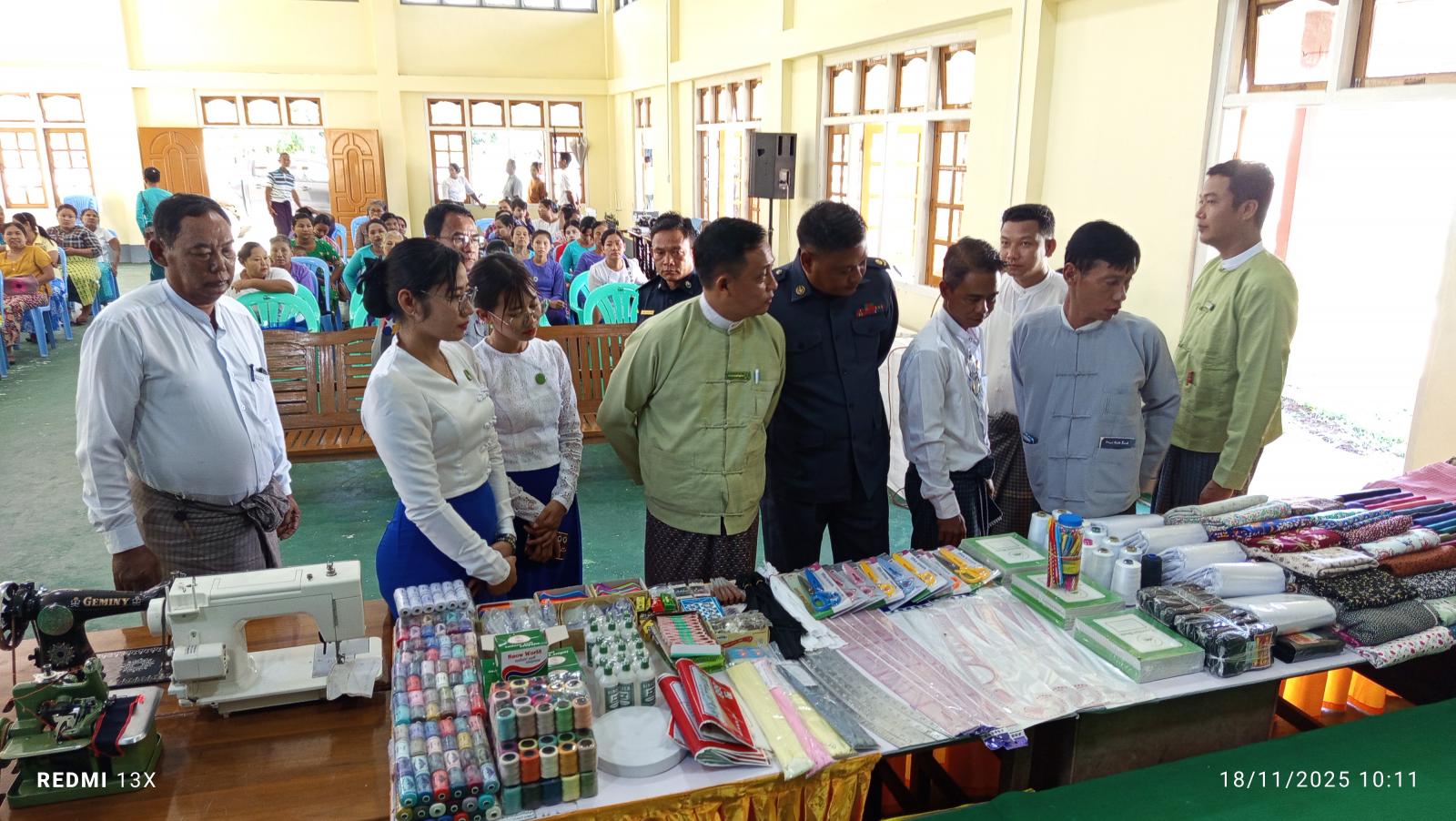 ဆက်လက်၍ သမဝါယမနှင့်ကျေးလက်ဖွံ့ဖြိုးရေးဝန်ကြီးဌာန၊ အသေးစားစက်မှုလက်မှုလုပ်ငန်းဦးစီးဌာနမှ ဦးစီးအရာရှိ ဒေါ်ကေခိုင်မြတ်ထွန်းမှ စက်ချုပ်နည်းပညာသင်တန်းတွင်ပို့ချမည့် သင်ခန်းစာများကို ရှင်းလင်းပြောကြားခဲ့ကြောင်း သိရသည်။ အဆိုပါသင်တန်းဖွင့်ပွဲအခမ်းအနားသို့ မြို့နယ်စီမံခန့်ခွဲရေးနှင့် အုပ်ချုပ်ရေးကော်မတီဥက္ကဋ္ဌ ဦးညီညီစောနှင့်အဖွဲ့ဝင်များ၊ မြို့နယ်အဆင့်ဌာနဆိုင်ရာအကြီးအကဲများ၊ အမျိုးသမီးရေးရာအဖွဲ့ဝင်များ၊ မိခင်နှင့်ကလေးအသင်းဝင်များ၊ သင်တန်းနည်းပြများနှင့် သင်တန်းသား၊ သင်တန်းသူများ စုစုပေါင်း အင်အား (၇၁)ဦး တက်ရောက်ခဲ့ပြီး သင်တန်းတက်ရောက်သူ (၃၄) ဦး ရှိကြောင်း သိရသည်။