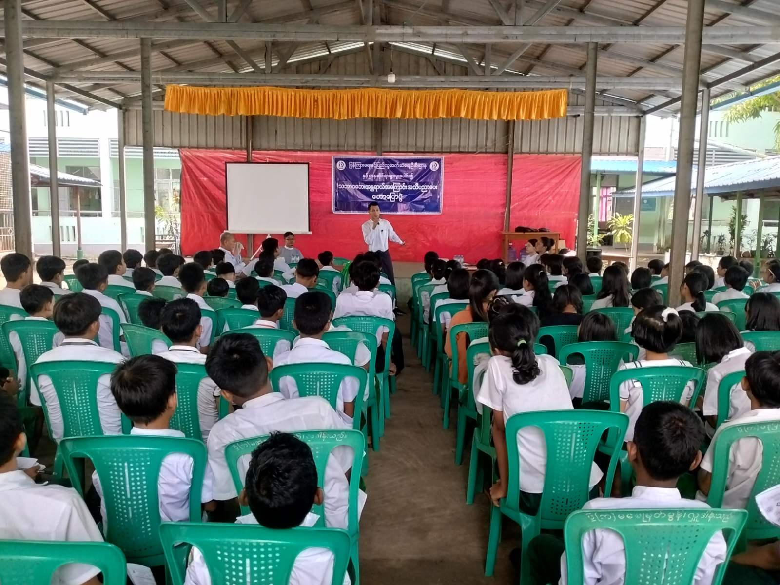 ဦးစွာ မြို့နယ်စီမံခန့်ခွဲရေးနှင့်အုပ်ချုပ်ရေးကော်မတီအဖွဲ့ အဖွဲ့ဝင် ဦးရွှေလှိုင်က အဖွင့်အမှာစကားပြောကြားပြီး မြို့နယ်ပြန်ကြားရေးနှင့်ပြည်သူ့ ဆက်ဆံရေးဦးစီးဌာန ဒုတိယဦးစီးမှူး ဦးဝေနိုင်ထွန်းက သဘာ၀ဘေးအန္တရာယ်အကြောင်း အသိပညာပေးပြောကြားရာတွင် ငလျင်အန္တရာယ်အတွက် ကြိုတင်ပြင်ဆင်ထားရန်အချက်များ၊ ငလျင်လှုပ်နေစဉ်အတွင်း လိုက်နာရန်အချက်များ၊ ငလျင်လှုပ်ပြီးနောက် ပြုလုပ်ရန်အချက်များနှင့် ရှောင်ရှားသင့်သည့်အချက်များ၊ မုန်တိုင်းအန္တရာယ်အတွက် ကြိုတင်ပြင်ဆင်ထားရမည့်အချက်များ၊ မုန်တိုင်းကျရောက်လာပါကလိုက်နာမည့်အချက်များ၊ မုန်တိုင်းဖြစ်ပေါ်နေချိန်တွင် ရှောင်ရှားသင့်သည့်အချက်များ၊ မုန်တိုင်းအန္တရာယ်ကျရောက်ပြီးပါက လိုက်နာရမည့်အချက်များ၊ မုန်တိုင်းသတိပေးချက်ရလျှင် ဆောင်ရွက်ရန်အချက်များနှင့် မိုးလေ၀သသတင်းများ ကို စဉ်ဆက်မပြတ်နားထောင်ပြီး အကြံပြုချက်များကို လိုက်နာဆောင်ရွက်သင့်ကြောင်း စသည့် အကြောင်း အရာများကို ဟောပြောခဲ့ပါသည်။
