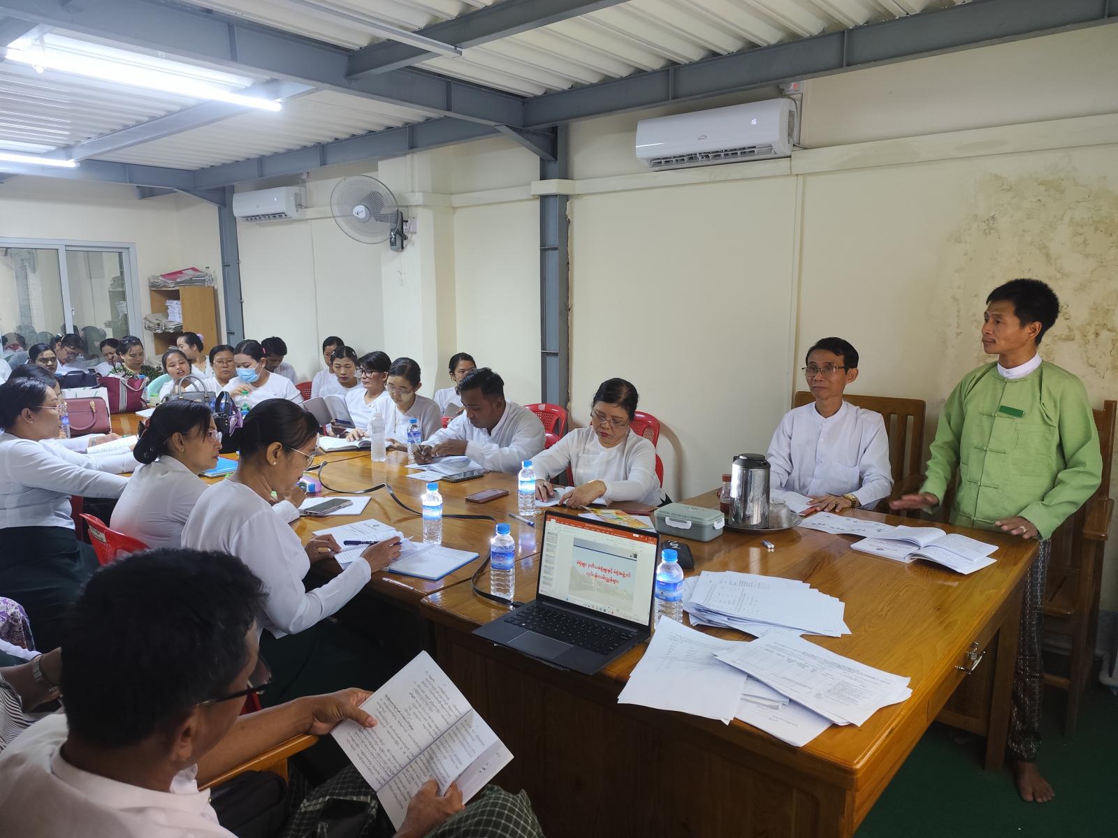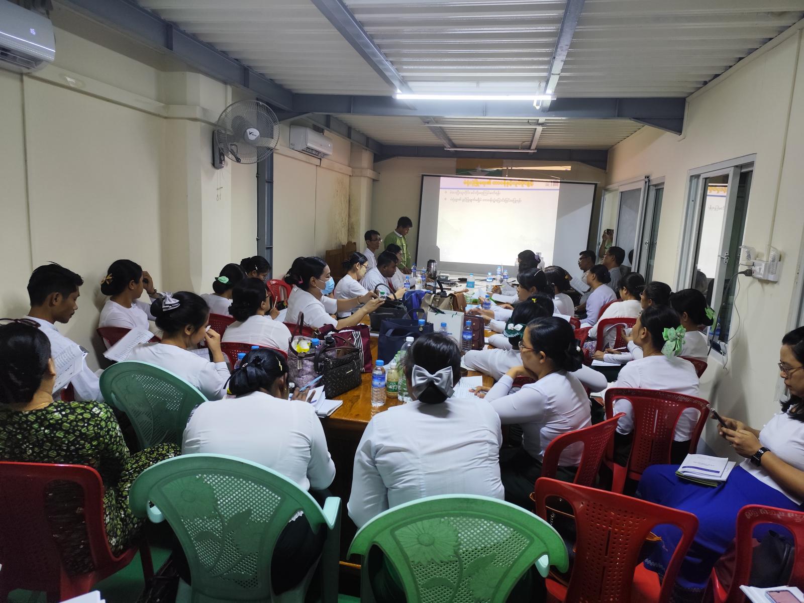 သင်တန်းတွင် မြိုနယ်အတွင်းရှိ မဲရုံများ၌ တာဝန်ထမ်းဆောင်ကြမည့် မဲရုံမှူး၊ ဒုမဲရုံမှူးများအား မဲရုံမှူး၊ ဒုမဲရုံမှူးနှင့် မဲရုံအဖွဲ့ဝင် လုပ်ငန်းလမ်းညွှန်များနှင့် လုပ်ငန်းလက်စွဲများ၊ MEVM မဲပေးစက် ကိုင်တွယ်အသုံးပြုနည်းများကို စာတွေ့လက်တွေ့သင်ကြားလျက်ရှိကြောင်း သိရသည်။