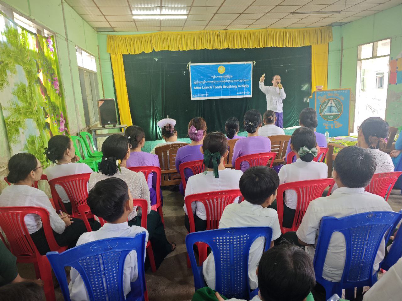 ဦးစွာ တိုင်းကျန်းမာရေးဦးစီးဌာန လက်ထောက်ညွှန်ကြားရေးမှူး Dr.Kon Stan မှ ကျောင်းသား/သူများအား သွားနှင့်ခံတွင်းကျန်းမာရေးအတွက် သွားတိုက်ပုံနည်းစနစ်များ၊ သွားနှင့်ခံတွင်ကျန်းမာရေး ကောင်းမွန်ခြင်း၏ အကျိုးကျေးဇူးများအား ရှင်းလင်းပြောကြားခဲ့ပြီး ကျောင်းသား/သူများအား သွားတိုက်နည်းပုံစံများကို သရုပ်ပြသခဲ့ကြောင်းသိရသည်။