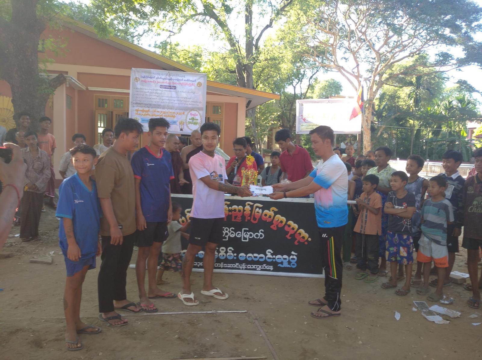 ထို့နောက် ဆုချီးမြှင့်ခြင်းအခမ်းအနားကို ဆက်လက်ကျင်းပရာ တတိယဆုရရှိသော အလ္လကပ္ပအသင်းအား တံတားဦးမြို့နယ်စီမံခန့်ခွဲရေးနှင့် လုံခြုံရေးကော်မတီအဖွဲ့ဝင် ဗိုလ်မှူးသန်းနိုင်ဦးက ဆုတံဆိပ်နှင့်ငွေသား(၅)သိန်းကျပ်ကိုလည်းကောင်း၊ ဒုတိယဆုရရှိသော မြက်ခင်းတု(၂)အသင်းအား ဂိုဏ်းထောက်ဘုန်းတော်ကြီးကျောင်းဆရာတော်မှ ဆုတံဆိပ်နှင့်ငွေသား(၁၀)သိန်းကျပ်ကိုလည်းကောင်း၊ ပထမဆုရရှိသောကိုယ်ပိုင်အသင်းအား နန်းယာကြည့် ဘုန်းတော်ကြီး ကျောင်းဆရာတော် ဘဒ္ဒန္တစန္ဒိမာက ဆုတံဆိပ်၊ ဆုဖလားနှင့် ငွေသား(၁၅)သိန်းကျပ်ကိုလည်းကောင်း ဆုများအသီးသီးချီးမြှင့်ပေးအပ်ကြကြောင်း သိရသည် ။