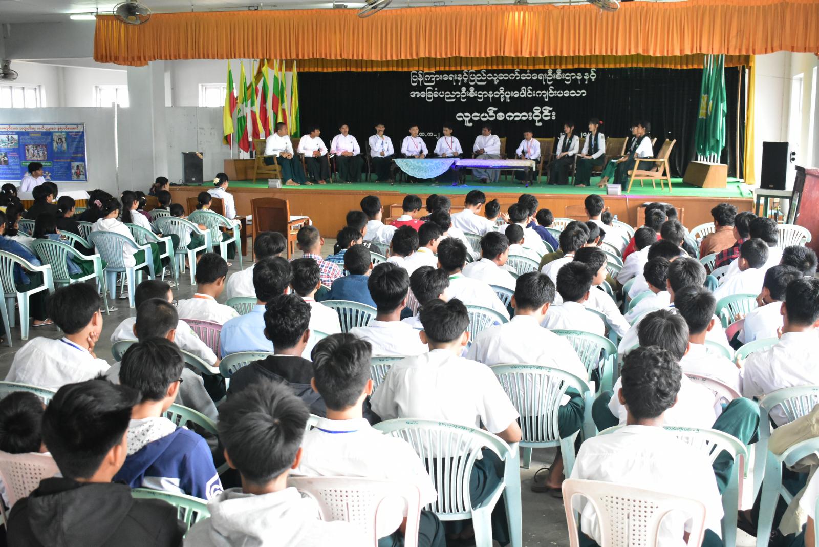ဆက်လက်ပြီး လူငယ်စကားဝိုင်း ကျင်းပဆောင်ရွက်ခဲ့ရာ ဦးစီးအရာရှိ ဦးထွန်းထွန်းနိုင်က အမှတ် (၂) အခြေခံပညာအထက်တန်းကျောင်းရှိ ကျောင်းသား၊ ကျောင်းသူ ၁၁ ဦးနှင့်အတူ ပါဝင်ဆွေးနွေးပြောကြားခဲ့သည်။