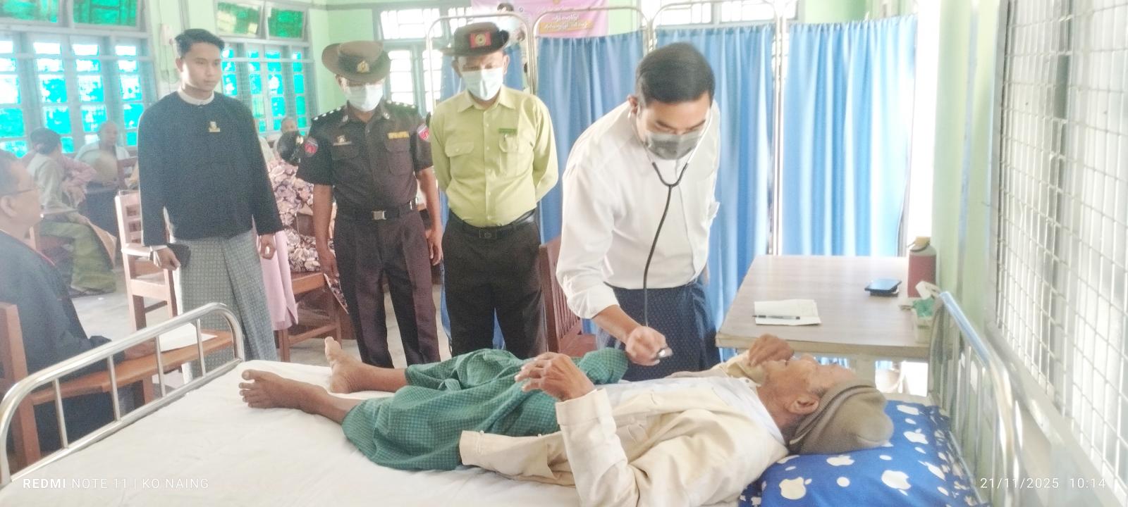 အဆိုပါ ကျန်းမာရေး စောင့်ရှောက်မှုအား မြို့နယ်အုပ်ချုပ်ရေးမှူး ဦးမျိုးမင်းသိန်းဦးဆောင်သော မြို့နယ်စီမံခန့်ခွဲရေးနှင့် အုပ်ချုပ်ရေးကော်မတီအဖွဲ့ဝင်များမှ သွားရောက်ကြည့်ရှုအားပေးခဲ့ကြောင်း သိရသည်။ ကျန်းမာရေးစောင့်ရှောက်မှုပေးရာတွင် ကျန်းမာရေးဝန်ထမ်းများက အငြိမ်းစားနိုင်ငံ့ဝန်ထမ်းများနှင့် သက်ကြီးဘိုးဘွားများအား သွေးပေါင်ချိန်ပေးခြင်း၊ ကိုယ်အလေးချိန် တိုင်းတာပေးခြင်း၊ ဆီးချိုသွေးချိုစစ်ဆေးပေးခြင်း၊ သွားနှင့်ခံတွင်းစစ်ဆေးပေးခြင်းနှင့် အထွေထွေကျန်းမာရေးစစ်ဆေးမှုများ ပြုလုပ်ပေးပြီး ဆေးဝါးနှင့်ကုသခြင်းကို (အခမဲ့) ဆောင်ရွက်ပေးခဲ့ကြောင်း သိရသည်။