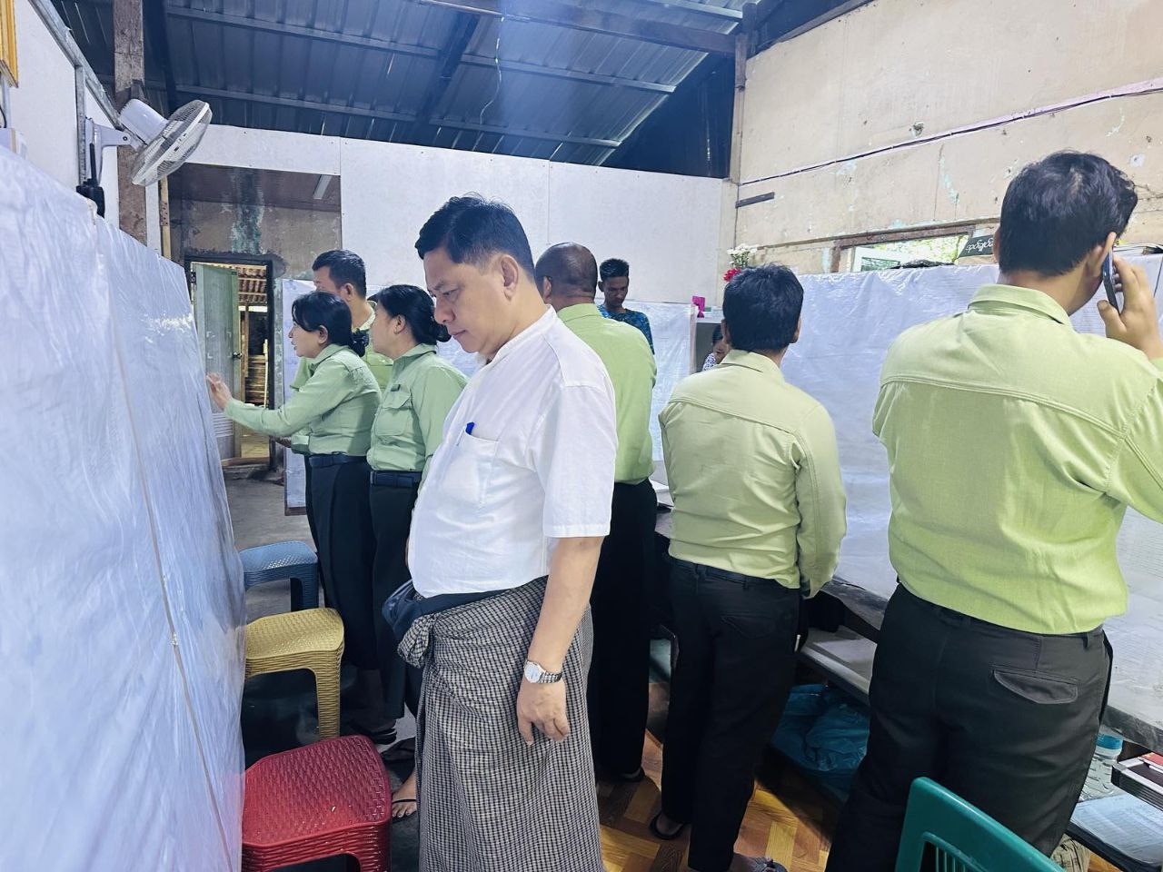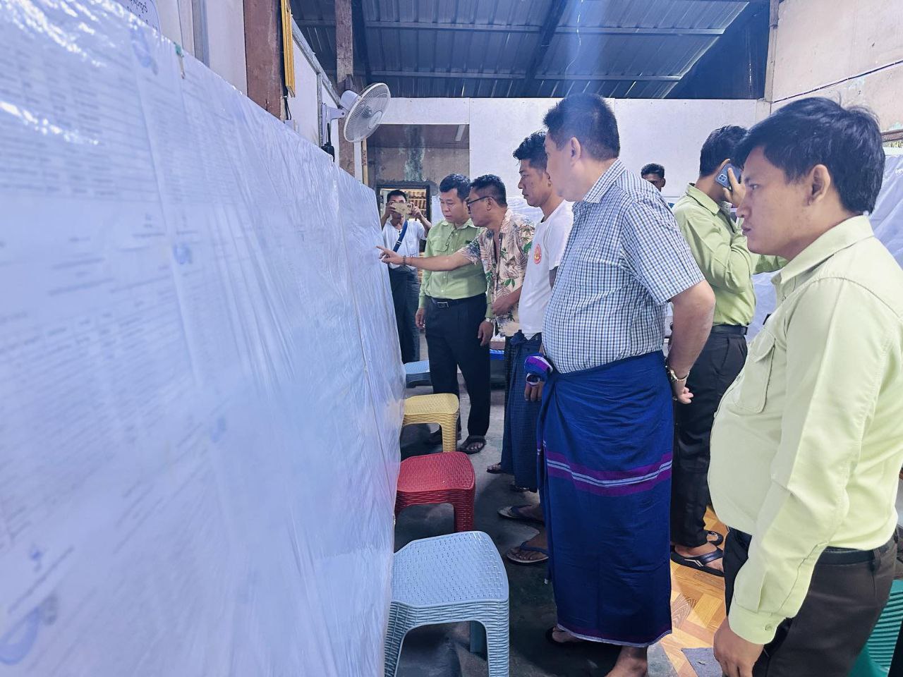 ရန်ကုန်တိုင်းဒေသကြီး၊ ဗိုလ်တထောင်ခရိုင်၊ ပုဇွန်တောင်မြို့နယ်၌ ၂၀၂၅ ခုနှစ် ဒီဇင်ဘာ ၂၈ ရက်နေ့တွင်ကျင်းပမည့် ပါတီစုံအထွေထွေ ရွေးကောက်ပွဲအတွက် ဒုတိယအကြိမ် မဲဆန္ဒရှင်စာရင်းများ ကြေညာထားရှိမှုနှင့်ပတ်သက်၍ မဲဆန္ဒရှင်ပြည်သူများစာရင်းအား ရပ်ကွက်များအလိုက် ကပ်ထားကြေညာထားရှိမှုကို ယမန်နေ့နံနက်ပိုင်း၌ မြို့နယ်စီမံခန့်ခွဲရေးနှင့်အုပ်ချုပ်ရေးကော်မတီဥက္ကဋ္ဌ ဦးဇော်မိုးအောင်နှင့်အဖွဲ့၀င်များ ကွင်းဆင်းကြည့်ရှုခဲ့ကြသည်။