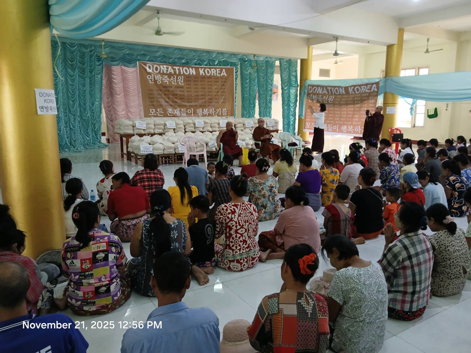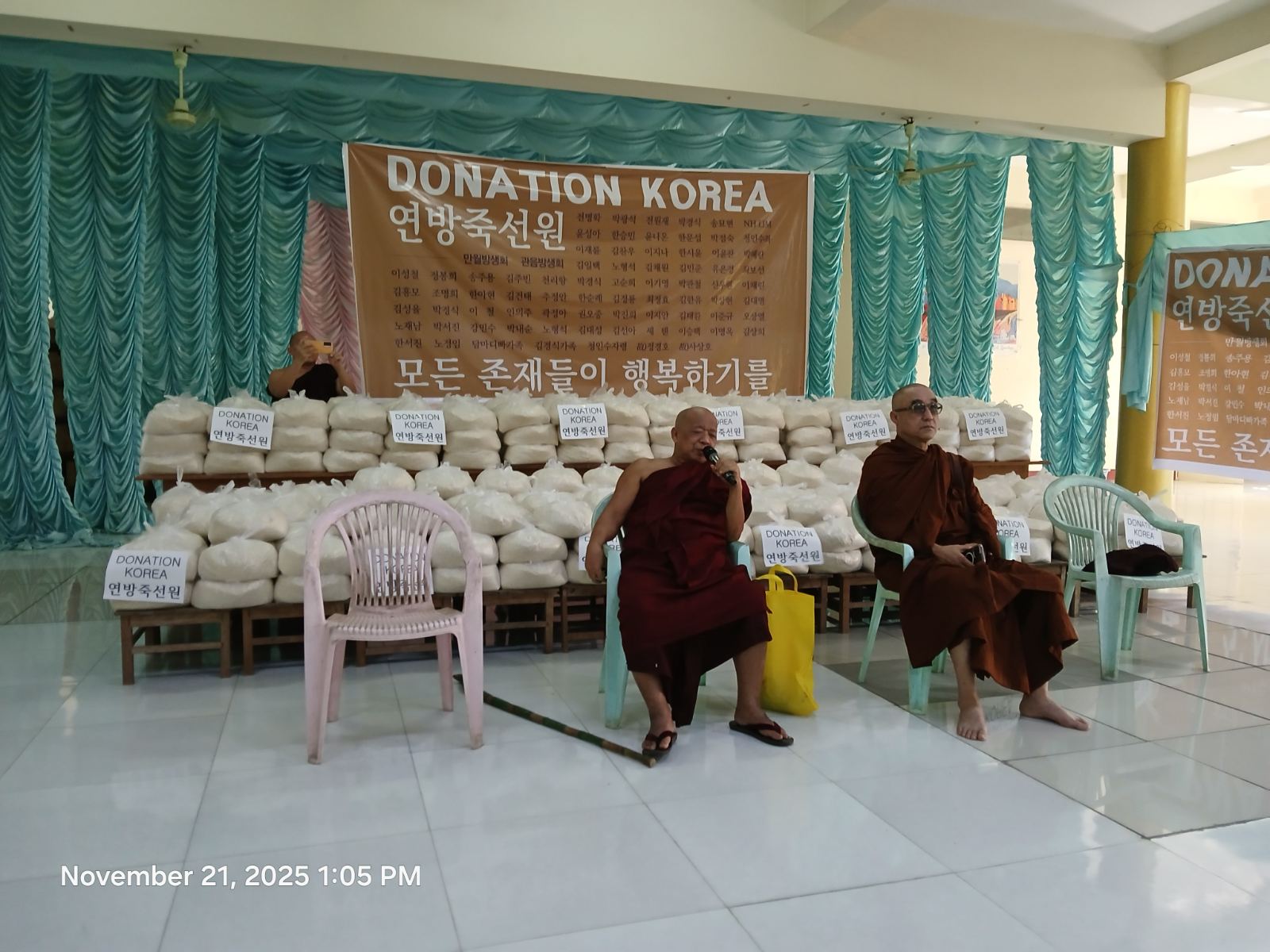 ရန်ကုန်တိုင်းဒေသကြီး၊ ဒဂုံမြို့သစ်ခရိုင်၊ ဒဂုံမြို့သစ်(မြောက်ပိုင်း)မြို့နယ်၊ အမှတ်(၄၂)ရပ်ကွက်ရှိ မဟာဂန္ဓာရုံကျောင်းတိုက်တွင် နိုဝင်ဘာ ၂၁ ရက်မွန်းလွဲပိုင်းက မဟာဂန္ဓာရုံဆရာတော်အားအမှူးပြု၍ ကိုရီးယားနိုင်ငံ၌ သီတင်းသုံးတော်မူသော ဆရာတော်နှင့် ဗုဒ္ဓဘာသာဝင်များက နွမ်းပါးအိမ်ထောင်စု (၅၀၀)အား ဆန်များလှူဒါန်းခဲ့ကြသည်။