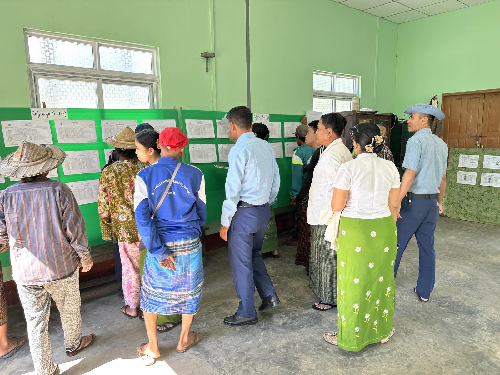 ရန်ကုန်တိုင်းဒေသကြီး၊ တိုက်ကြီးမြို့နယ်၌ ၂၀၂၅ ခုနှစ် ပါတီစုံဒီမုကရေစီအထွေထွေ ရွေးကောက်ပွဲ အောင်မြင်စွာ ကျင်းပနိုင်ရေးအတွက် မဲဆန္ဒရှင်အမည်စာရင်းများကို ဒုတိယအကြိမ် ကပ်ထားကြေညာလျက်ရှိရာ ပြည်သူများ လာရောက်ကြည့်ရှုနေမှုအား ယနေ့နံနက်ပိုင်းက တာဝန်ရှိသူများက ကွင်းဆင်းကြည့်ရှုစစ်ဆေးသည်။