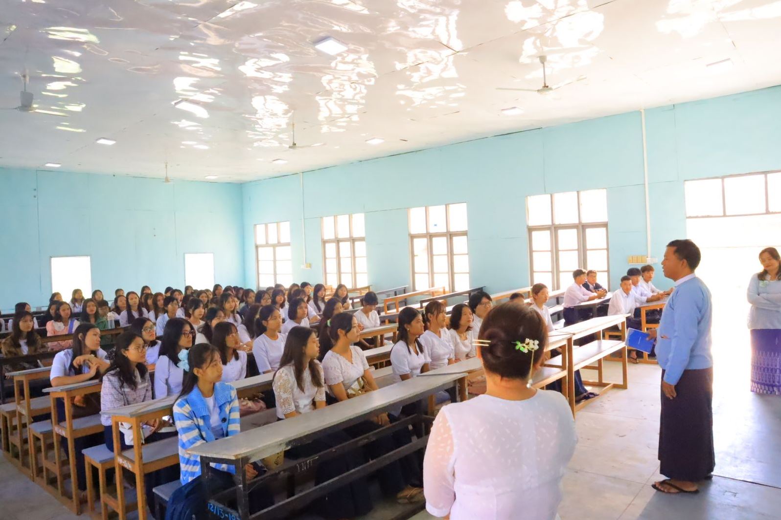 နည်းပညာတက္ကသိုလ်(ကျောက်ဆည်)၊ ၂၀၂၅-၂၀၂၆ ပညာသင်နှစ်၊ ဘွဲ့ကြို(ပထမနှစ်) တက်ရောက်လာသည့် မောင်မယ်သစ်လွင် ကျောင်းသား(၂၂၅)ဦးနှင့် ကျောင်းသူ(၁၅၈)ဦး စုစုပေါင်း (၃၈၃)ဦးတို့ကို ပါမောက္ခချုပ်(တာဝန်)နှင့်ဒုတိယပါမောက္ခချုပ်၊ ပညာရေးနှင့်စီမံခန့်ခွဲရေးအဖွဲ့ဝင်များမှ ဦးဆောင်ပြီး နိုဝင်ဘာ ၂၄ ရက် နံနက်(၈)နာရီခွဲက D1,D2 စာသင်ခန်းများတွင် လှိုက်လှဲနွေးထွေးစွာကြိုဆိုခဲ့ကြောင်း သိရသည်။