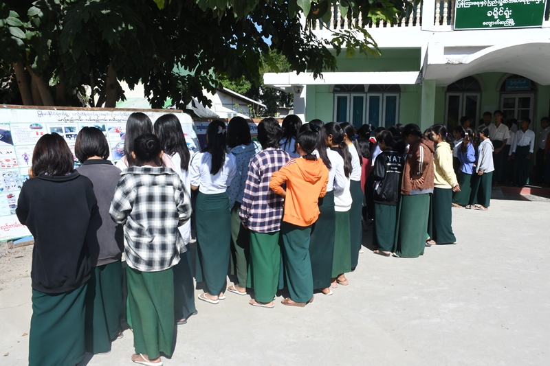 ထို့နောက် စာဖတ်ဝိုင်းသို့ တက်ရောက်လာကြသည့် ကျောင်းသား/ကျောင်းသူများက ပြန်ကြားရေးနှင့်ပြည်သူ့ဆက်ဆံရေးဦးစီးဌာနမှ ခင်းကျင်းပြသထားသော သုတ၊ ရသ စာအုပ်စာစောင်များနှင့် အရွယ်မရောက်သေးသောကလေးသူငယ်များ စစ်မှုထမ်းခြင်းမှကာကွယ်ခြင်း၊ ယာဉ်စည်းကမ်းလမ်းစည်းကမ်းအန္တရာယ်ကင်းရှင်းရေး၊ ကလေးအလုပ်သမားပပျောက်ရေး၊ သဘာဝဘေးအန္တရာယ်ကာကွယ်ရေး အသိပညာပေးနံရံကပ်စာစောင်များကို စိတ်ပါဝင်စားစွာကြည့်ရှုခဲ့ကြောင်း သိရသည်။