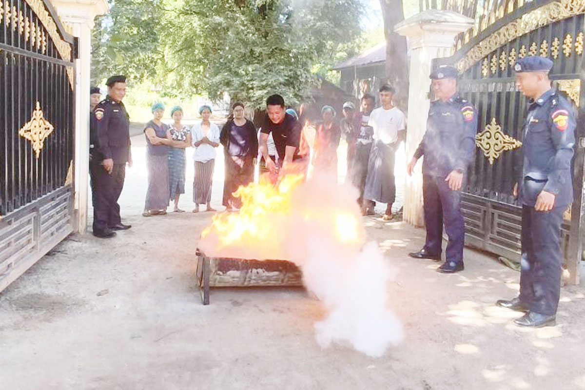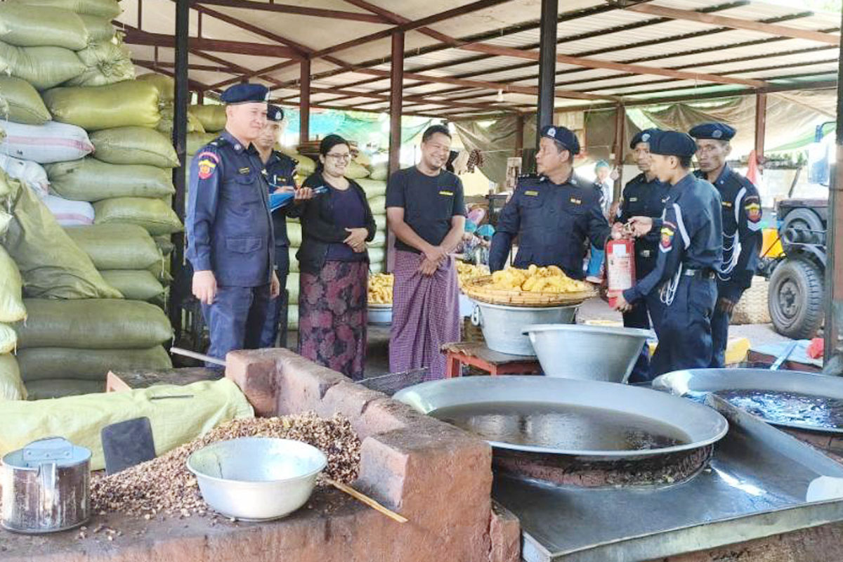 မန္တလေးတိုင်းဒေသကြီး၊ ညောင်ဦးခရိုင် ကျောက်ပန်းတောင်းမြို့နယ်၌ မီးဖိုမီးအသုံးပြု ဆောင်ရွက်လျက်ရှိသည့် အကြော်ဖိုလုပ်ငန်းများဖြစ်သည့် ပဲကြော်ဖိုများနှင့် အာလူးကြော်ဖိုများ မီးဘေးလုံခြုံရေးစစ်ဆေးခြင်းနှင့် အသိပညာပေး ဇာတ်တိုက်လေ့ကျင့်ခြင်းများကို ယနေ့ နံနက် ၁၀ နာရီက အဆိုပါ လုပ်ငန်းလုပ်ကိုင်သည့် ရပ်ကွက်များအတွင်း ကွင်းဆင်ဆောင်ရွက်ခဲ့သည်။