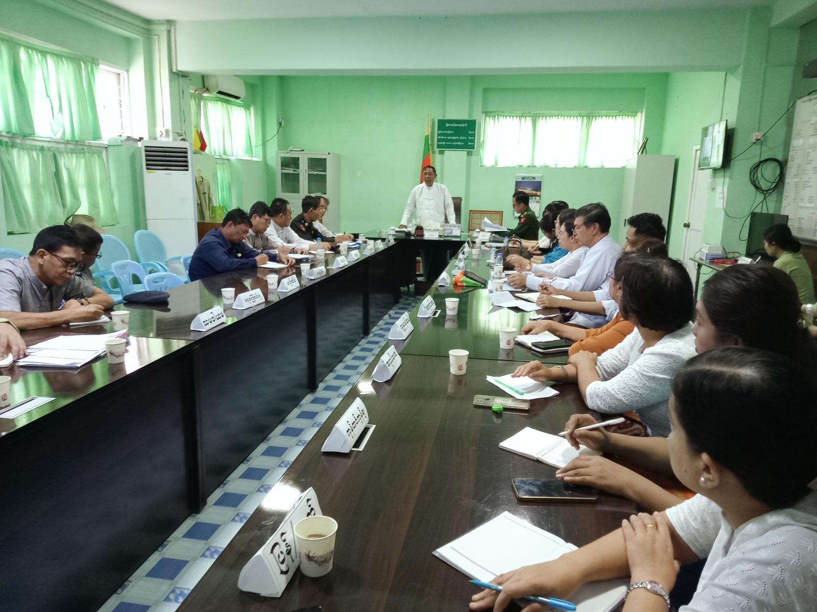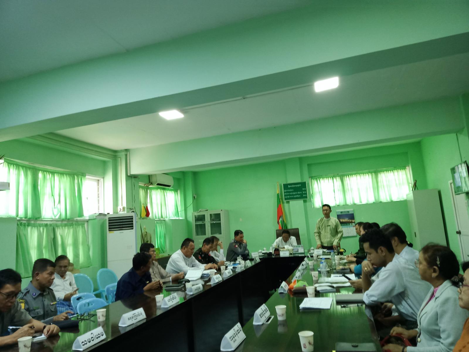 ရှေးဦးစွာ ခရိုင်စီမံခန့်ခွဲရေးနှင့် အုပ်ချုပ်ရေးကော်မတီအဖွဲ့ဝင် ဦးစံကျော်က ရွေးကောက်ပွဲဆိုင်ရာလုပ်ငန်းများအား သက်ဆိုင်ရာကဏ္ဍအလိုက် တာဝန်ရှိသူများမှ ကြိုတင်ပြင်ဆင် ဆောင်ရွက်ထားရှိရေး၊ ရပ်ကွက်/ကျေးရွာအလိုက် မဲဆန္ဒရှင်စာရင်းများ(ဒုတိယအကြိမ်) ကပ်ထား ကြေညာရာတွင် ကျန်ရှိမှုမရှိစေရေး ရွေးကောက်ပွဲကာလ နီးကပ်လာပြီဖြစ်သဖြင့် မြို့နယ်အတွင်းရှိ ဌာနဆိုင်ရာရုံးများနှင့် ရပ်ကွက်များတွင် လုံခြုံရေးအထူးဂရုပြု ဆောင်ရွက်ရေး၊ ပွင့်လင်းရာသီရောက်ရှိပြီဖြစ်သဖြင့် ဌာနဆိုင်ရာရုံးအဆောက်အဦများနှင့် မြို့နယ်အတွင်း သန့်ရှင်းသာယာလှပရေးဆောင်ရွက်ရန် စသည်ဖြင့်ပြောကြားပြီး၊ မြို့နယ်စီမံခန့်ခွဲရေးနှင့်အုပ်ချုပ်ရေးကော်မတီဥက္ကဋ္ဌ ဦးကောင်းမြတ်ကျော်က မြို့နယ်အတွင်းလုံခြုံရေးနှင့် ရွေးကောက်ပွဲကာလ လုံခြုံရေးကိစ္စရပ်များအား အထူးဂရုပြုကြိုတင် ဆောင်ရွက်ရေး၊ ဒီဇင်ဘာလတွင် လူထုလမ်းလျှောက်ပွဲ ကျင်းပရမည့်ကိစ္စရပ်များ၊ ထူးခြားဖြစ်စဥ်များ တွေ့ရှိပါက မိမိတို့မြို့နယ်တာဝန်ရှိသူများထံသို့ အချိန်နှင့်တစ်ပြေးညီအသိပေးကြရန်တို့ကို ရှင်းလင်းပြောကြားသည်။