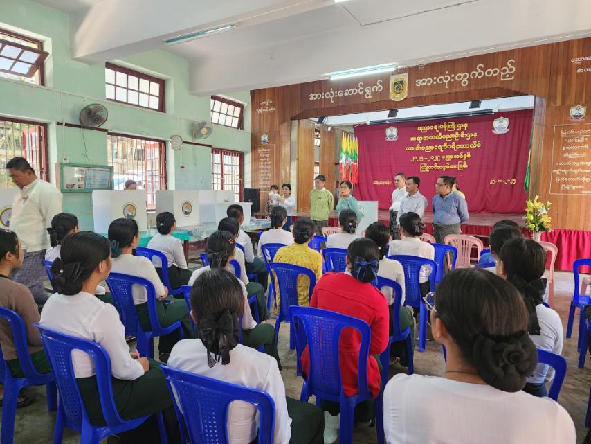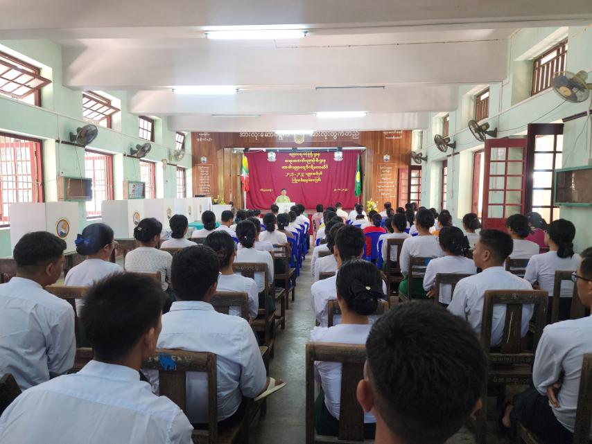 အခမ်းအနားတွင် မြို့နယ်အုပ်ချုပ်ရေးမှူးက အဖွင့်အမှာစကားပြောကြားခဲ့ပြီး မြို့နယ်ရွေးကောက်ပွဲကော်မရှင်အဖွဲ့ခွဲ ဥက္ကဋ္ဌက ရွေးကောက်ပွဲဆိုင်ရာ ကြိုတင်ဆန္ဒမဲပေးခြင်းအား ရှင်းလင်းဆွေးနွေးခြင်း၊ မြို့နယ်ရွေးကော်အတွင်းရေးမှူးက ကြိုတင်မဲများအား ပယ်မဲ မဖြစ်စေရေးနှင့် ဆန္ဒပြုရမည့် အချက်များအား ချပြရှင်းလင်းဆွေးနွေးခဲ့ကြပြီး ကြိုတင်မဲပေးမည့် ပုံစံ-၁၅ အရ နေရပ်စွန့်ခွာပြည်သူ (၆၆) ဦးမှ တစ်ဦးချင်း ကြိုတင်ဆန္ဒမဲပေးခဲ့သည်။