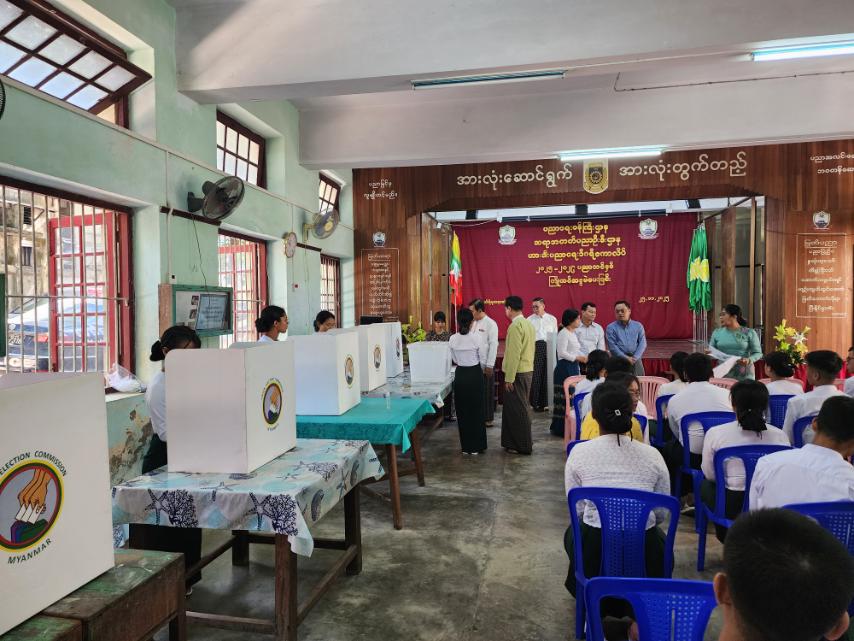 ရန်ကုန်တိုင်းဒေသကြီး၊ အလုံမြို့နယ်၊ စောရန်ပိုင်တောင်ရပ်ကွက်၊ မင်းရဲကျော်စွာလမ်း၊ အ.ထ.က(၃)ကျောင်းရှိ ဟားခါးပညာရေး ဒီဂရီကောလိပ် သီရိရတနာခန်းမ၌ ယနေ့နံနက်ပိုင်းက နေရပ်စွန့်ခွာပြည်သူများ ကြိုတင်ဆန္ဒမဲပေးခဲ့ကြသည်။