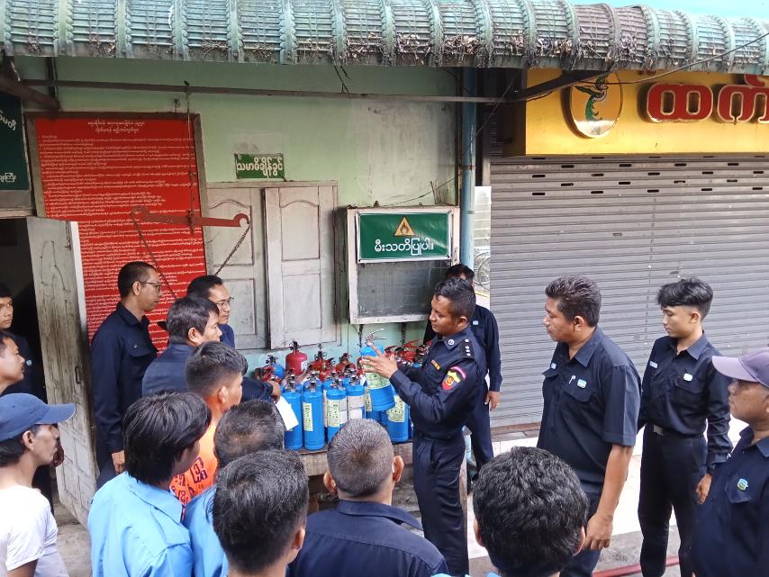 ထို့နောက် မီးလောင်ကျွမ်းမှုဖြစ်ပေါ်ပါက အချိန်တိုအတွင်း အရေးပေါ်ဆောင်ရွက်ရမည့် မီးငြှိမ်းသတ်နည်းများကို လက်တွေ့သရုပ်ပြဆောင်ရွက်ခဲ့ကြောင်း သိရသည်။