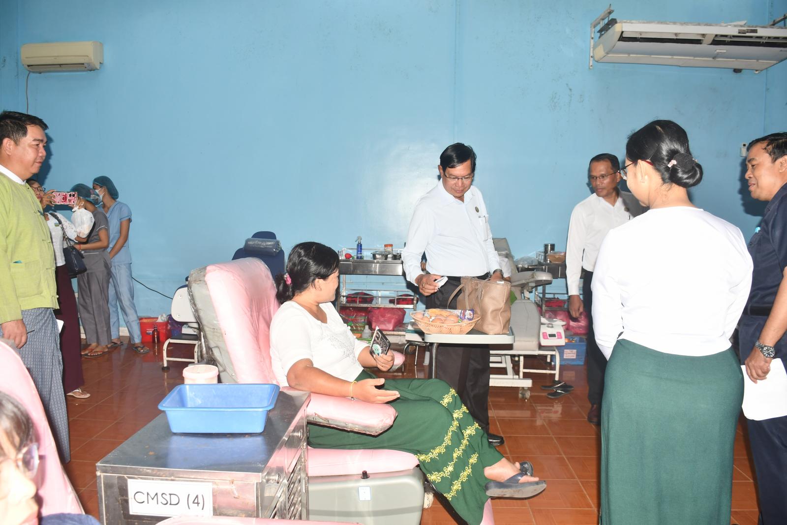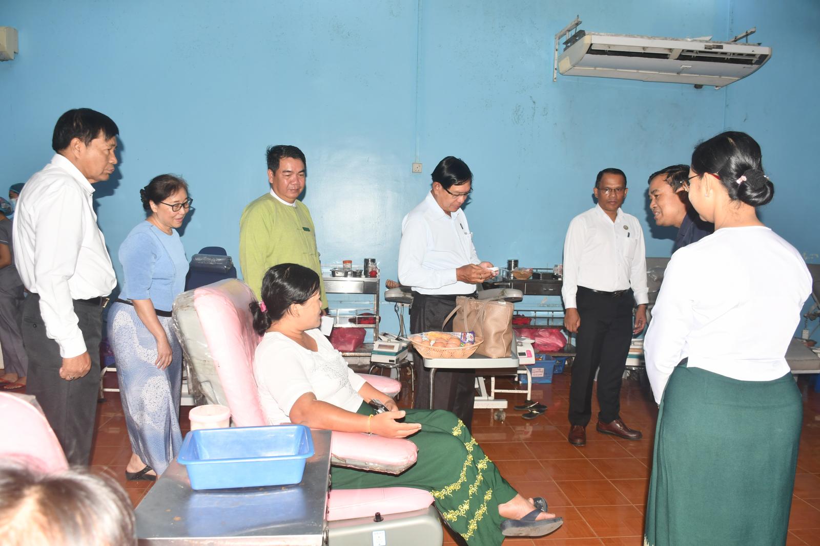 ဦးစွာ ရန်ကုန်တိုင်းဒေသကြီးဝန်ကြီးချုပ် ဦးစိုးသိန်းနှင့် တိုင်းဒေသကြီးအစိုးရအဖွဲ့ဝင်များသည် တိုင်းဒေသကြီးအတွင်းရှိ ဌာနဆိုင်ရာများမှ ဝန်ထမ်းများ စုစုပေါင်း (၂၀၀) ဦးတို့က သွေးလှူဒါန်းနေမှု အခြေအနေများအား ကြည့်ရှုအားပေးရာ တာဝန်ရှိသူများက သွေးလှူဒါန်းနေသည့် အခြေအနေနှင့် ပတ်သက်၍ ရှင်းလင်းတင်ပြရာ တိုင်းဒေသကြီးဝန်ကြီးချုပ်က လိုအပ်သည်များ မှာကြားကာ တိုင်းဒေသကြီးဝန်ကြီးချုပ်၊ တိုင်းဒေသကြီးအစိုးရအဖွဲ့ဝင်များနှင့် တာဝန်ရှိသူများက သွေးလှူရှင်များအား အာဟာရဖြည့်စွက်စာများ ပေးအပ်ခဲ့သည်။