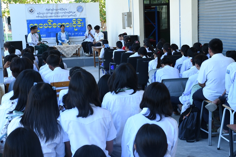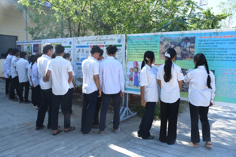 ဆက်လက်ပြီး တက်ရောက်လာသော ကျောင်းသား၊ ကျောင်းသူများက သိရှိလိုသည်များကိုအပြန် အလှန်မေးမြန်းဆွေးနွေးခဲ့ကြပြီး ကျောက်ဆည်ခရိုင် ပြန်ကြားရေးနှင့်ပြည်သူ့ဆက်ဆံရေးဦးစီးဌာနမှ ခင်းကျင်းပြသထားသည့် သုတ/ရသစာအုပ်များနှင့် အသိပညာပေးနံရံကပ်စာစောင်များ စိတ်ဝင်စားစွာ ကြည်ရှုခဲ့ကြောင်း သိရသည်။
