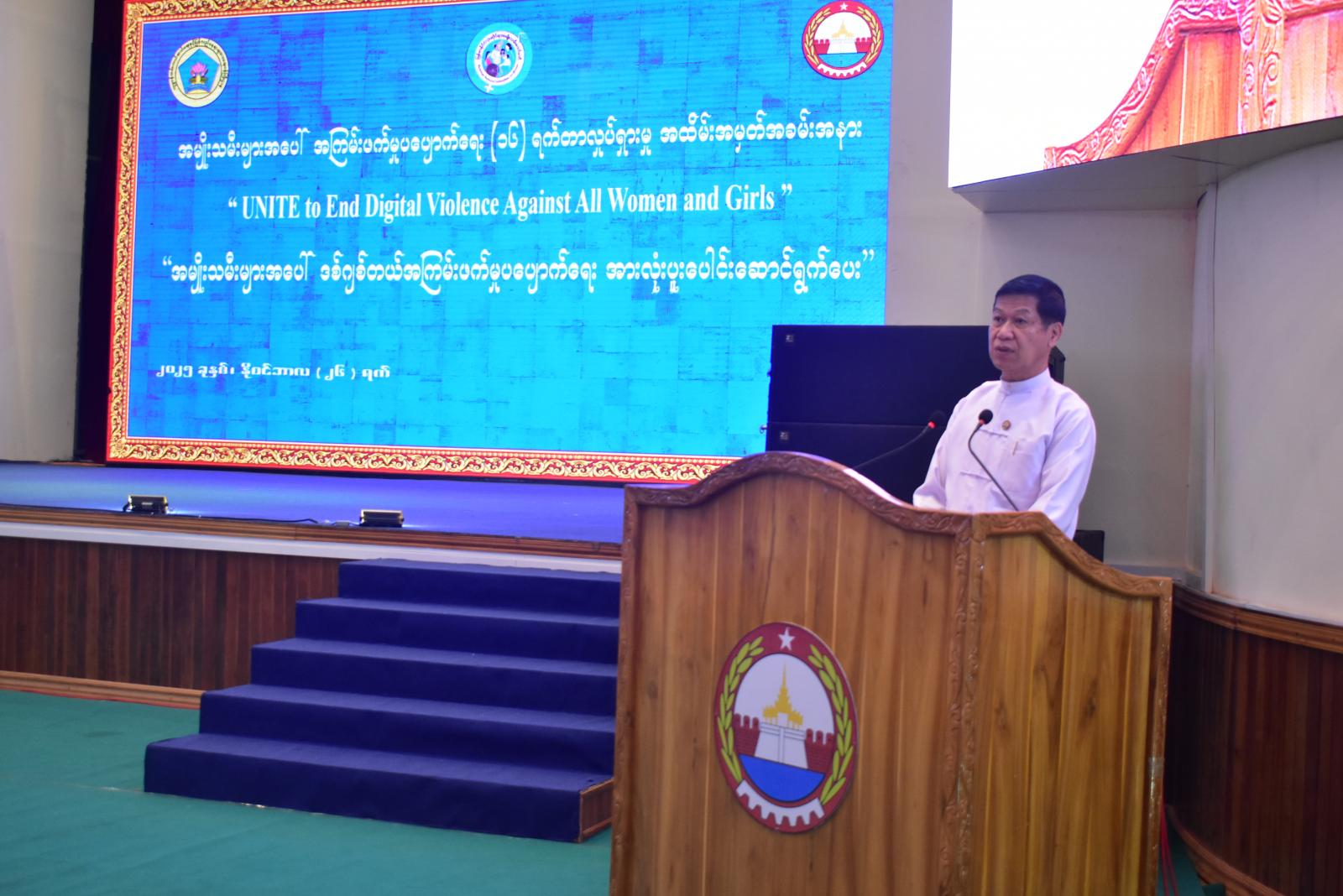 လူမှုဝန်ထမ်းကယ်ဆယ်ရေးနှင့်ပြန်လည်နေရာချထားရေးဝန်ကြီးဌာန၊ လူမှုဝန်ထမ်းဦးစီးဌာနအနေဖြင့် အမျိုးသမီးများအပေါ် အကြမ်းဖက်မှုပပျောက်ရေး (၁၆) ရက်တာလှုပ်ရှားမှု အထိမ်းအမှတ်အခမ်းအနားကို မန္တလေးမြို့၊ မြို့တော်ခန်းမ၌ ယနေ့နံနက်ပိုင်းက ကျင်းပခဲ့သည်။