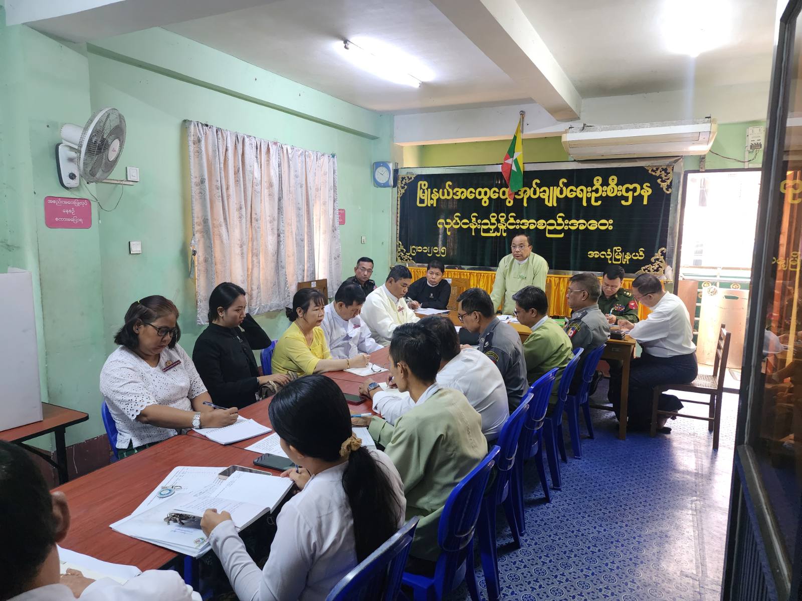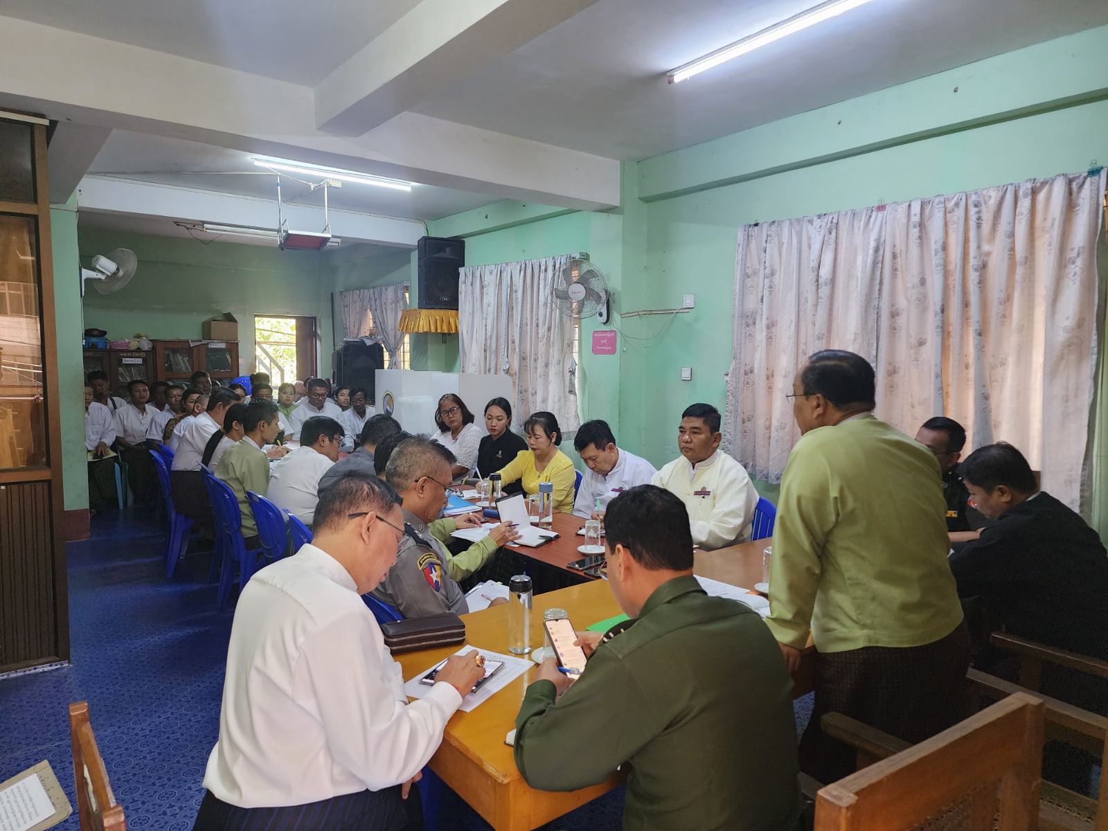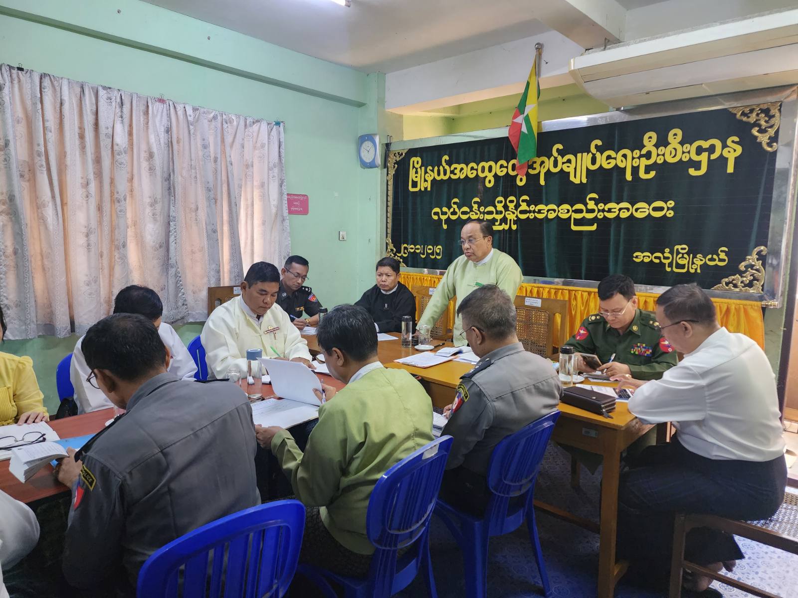 အစည်းအဝေးတွင် ခရိုင်စီမံခန့်ခွဲရေးနှင့်အုပ်ချုပ်ရေးကော်မတီဥက္ကဋ္ဌက အဖွင့်အမှာစကားပြောကြားခဲ့ပြီး မြို့နယ်စီမံခန့်ခွဲရေးနှင့် အုပ်ချုပ်ရေးကော်မတီဥက္ကဋ္ဌက ခရီးလွန်များ မဲစာရင်းပါရှိရေး စိစစ်ဆောင်ရွက်နေမှုများအား ရှင်းလင်းပြောကြားခြင်း၊ ခရိုင်စီမံခန့်ခွဲရေးနှင့် အုပ်ချုပ်ရေးကော်မတီအဖွဲ့ဝင်များမှ ခရီးလွန်စိစစ်နေမှုများတွင် ဆောင်ရွက်ရမည့်အခြေအနေများအား ဆွေးနွေးခြင်း၊ မြို့နယ်ရွေးကောက်ပွဲကော်မရှင်အဖွဲ့ခွဲဥက္ကဋ္ဌက ရွေးကောက်ပွဲနှင့်ပတ်သက်သည်များအား ရှင်းလင်းဆွေးနွေးခြင်း၊ မြို့နယ်မြေပြင်ကွင်းဆင်းစာရင်း ကောက်ယူရေးကြီးကြပ်မှုကော်မတီအဖွဲ့ဝင်များမှ ခရီးလွန်ဆောင်ရွက်နေမှုများအား ဆွေးနွေးခြင်း၊ ရပ်ကွက်အုပ်ချုပ်ရေးမှူးများနှင့် ရပ်ကွက်စာရေးများမှ မိမိတို့ရပ်ကွက်အလိုက် ခရီးလွန်များ စိစစ်ဆောင်ရွက်နေမှုများအား ဆွေးနွေးပြောကြားခဲ့ကြပြီး ခရိုင်စီမံခန့်ခွဲရေးနှင့် အုပ်ချုပ်ရေးကော်မတီဥက္ကဋ္ဌက လိုအပ်သည်များကို ညှိနှိုင်းဆွေးနွေးခဲ့သည်။